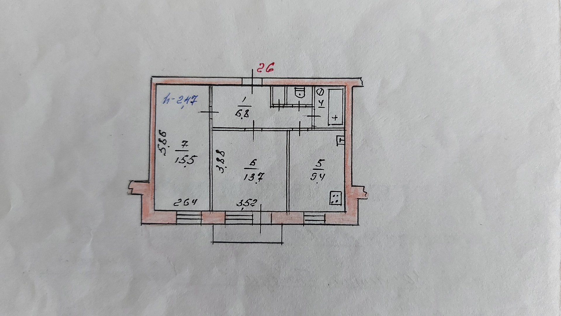Балкон, лоджия 1 балкон