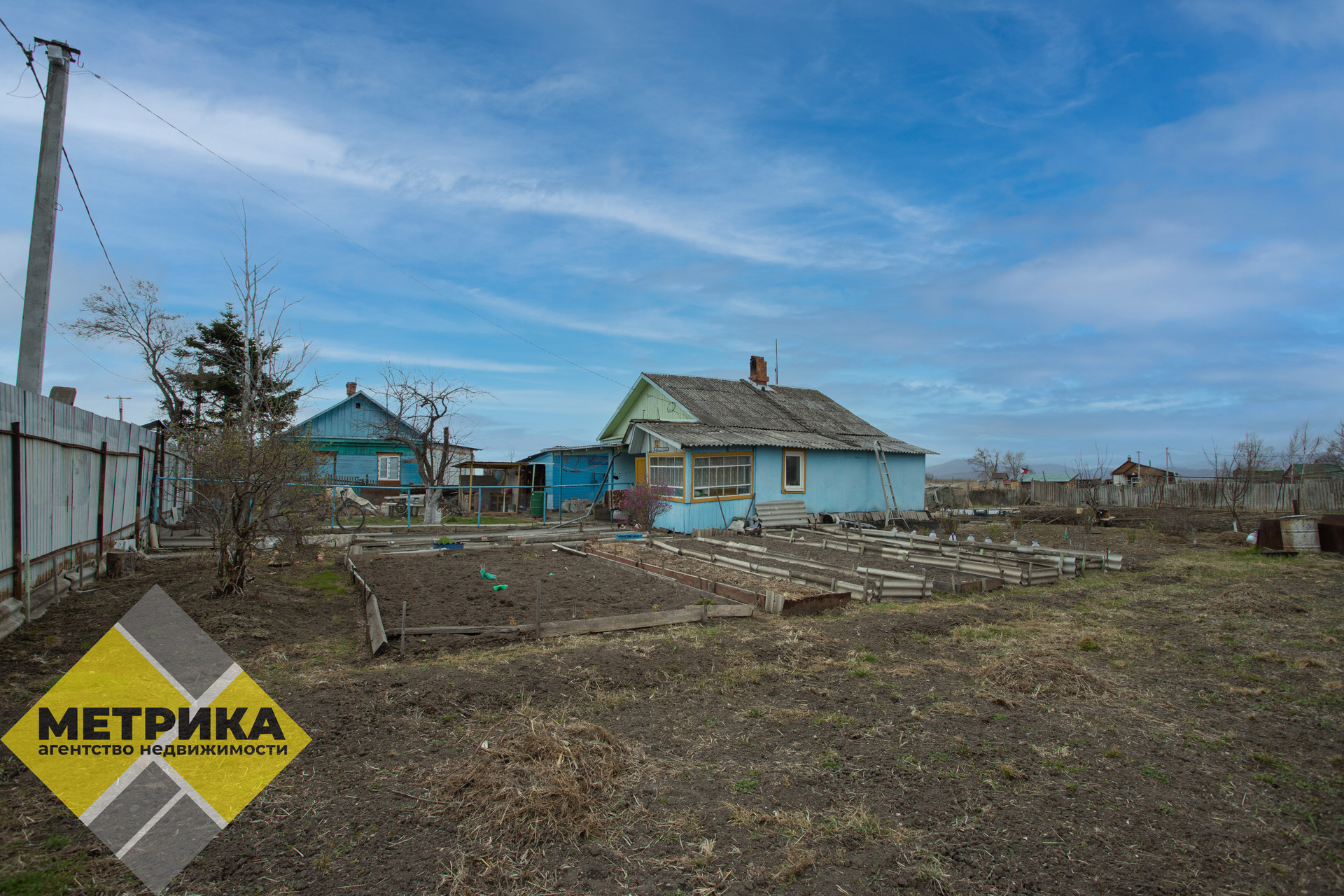 На территории – небольшое помещение для ведения хозяйственных нужд, часть земельного участка выделена под сельскохозяйственную деятельность. Централизованный водопровод.