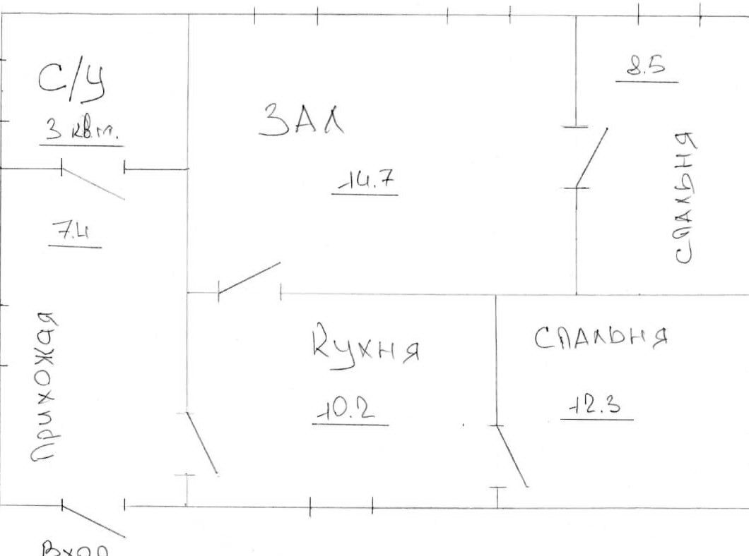 Общая площадь 56.3 м2