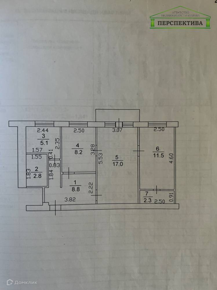 Общая площадь 55.7 м2