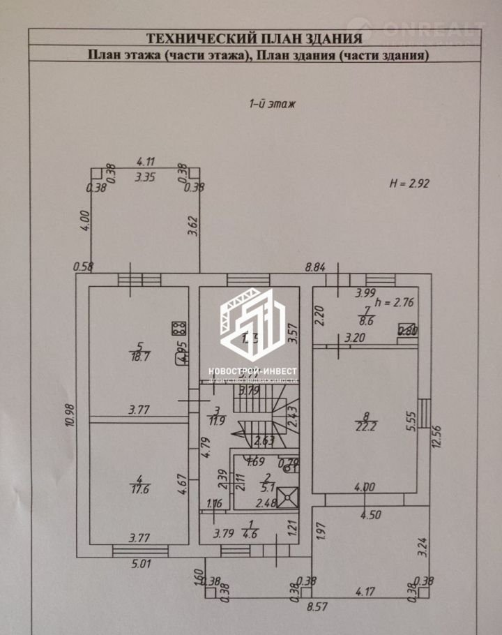 Общая площадь здания (с учетом гаража) – 192 кв.м;