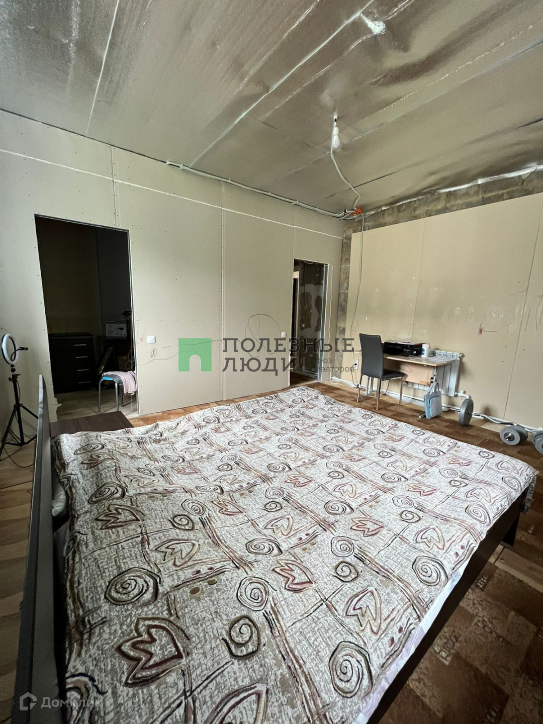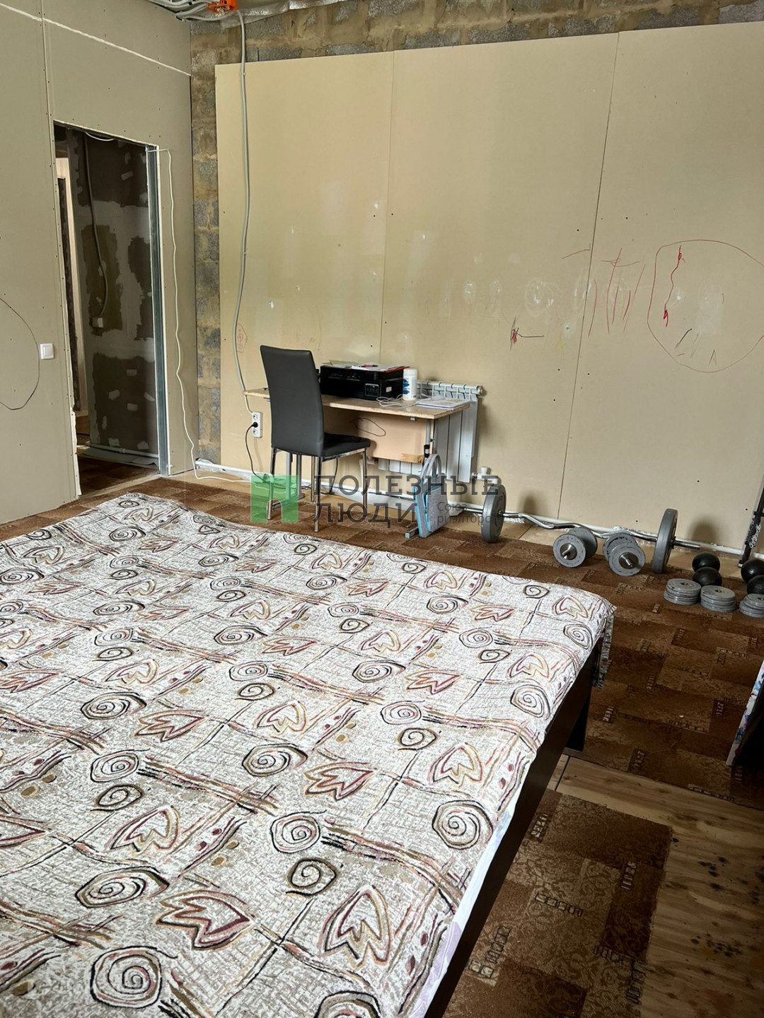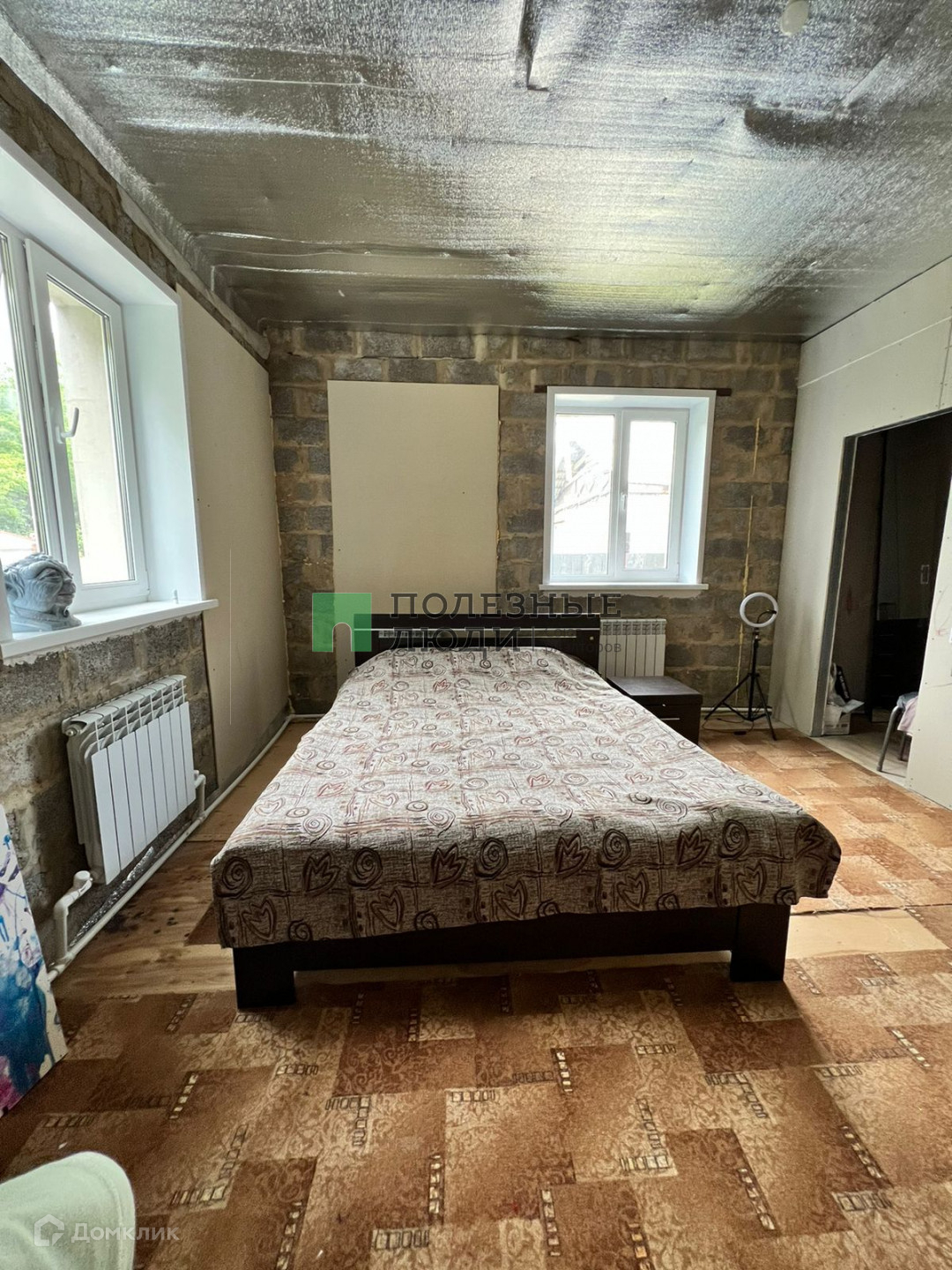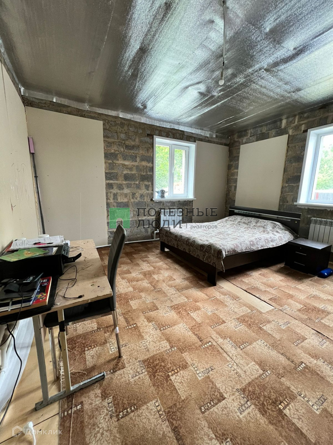 1-й этаж состояние-жилое, просторный коридор 16м; кухня-гостиная 16 м; 2 раздельные спальни: по 20 метров и две гардеробные по кв.м.;  санузел и котельная по 8 м.2-й этаж в черновой отделке.