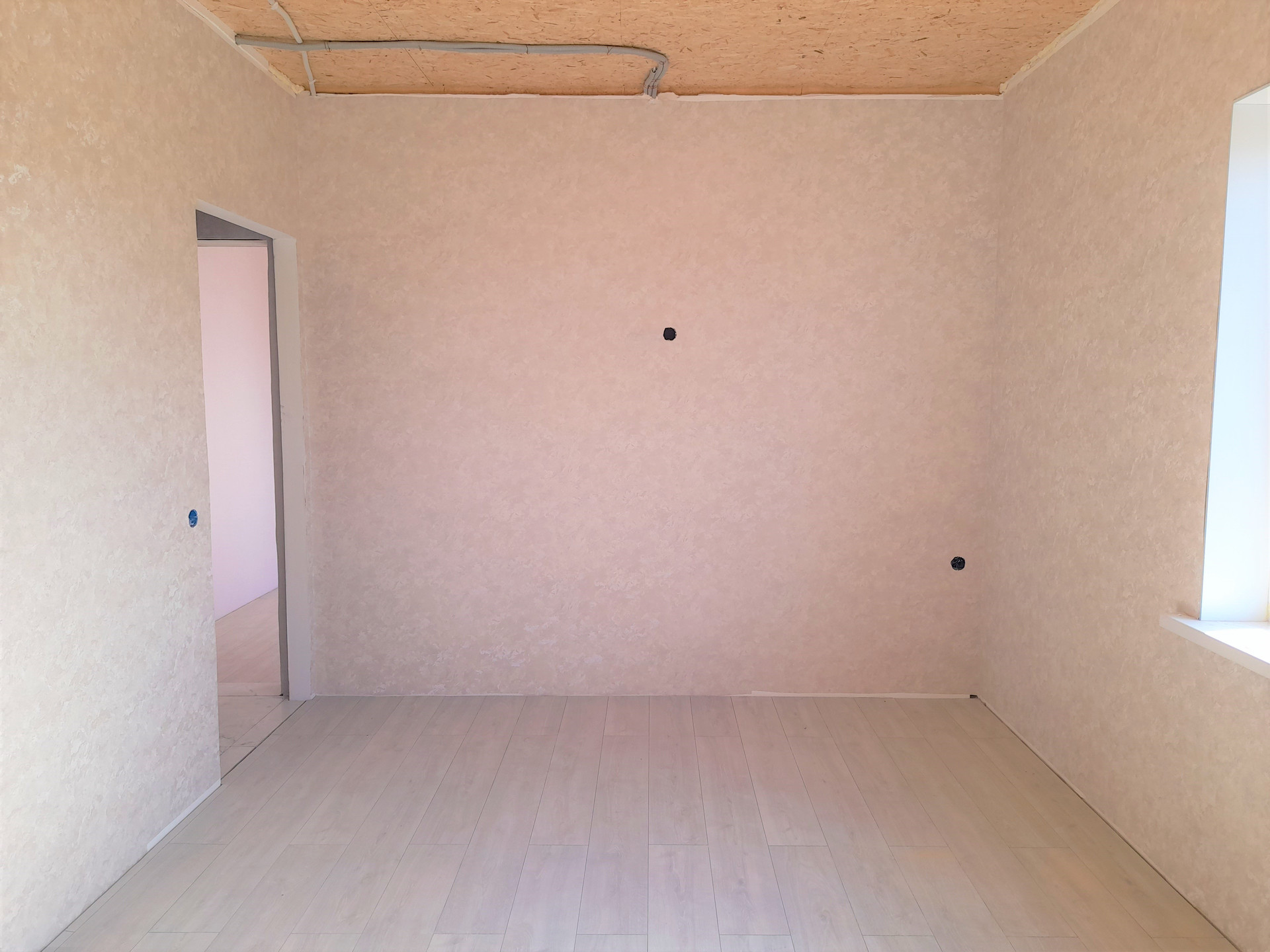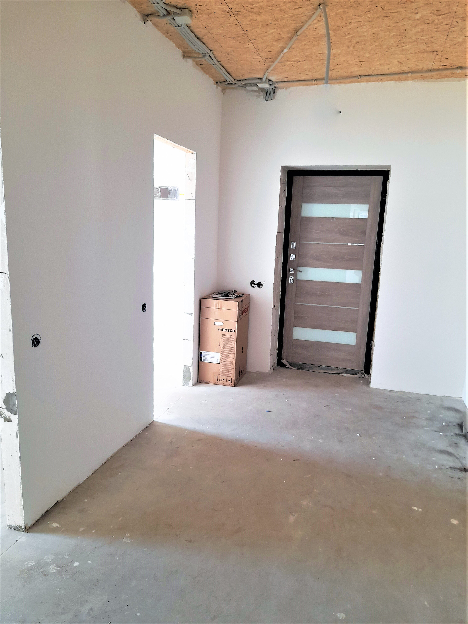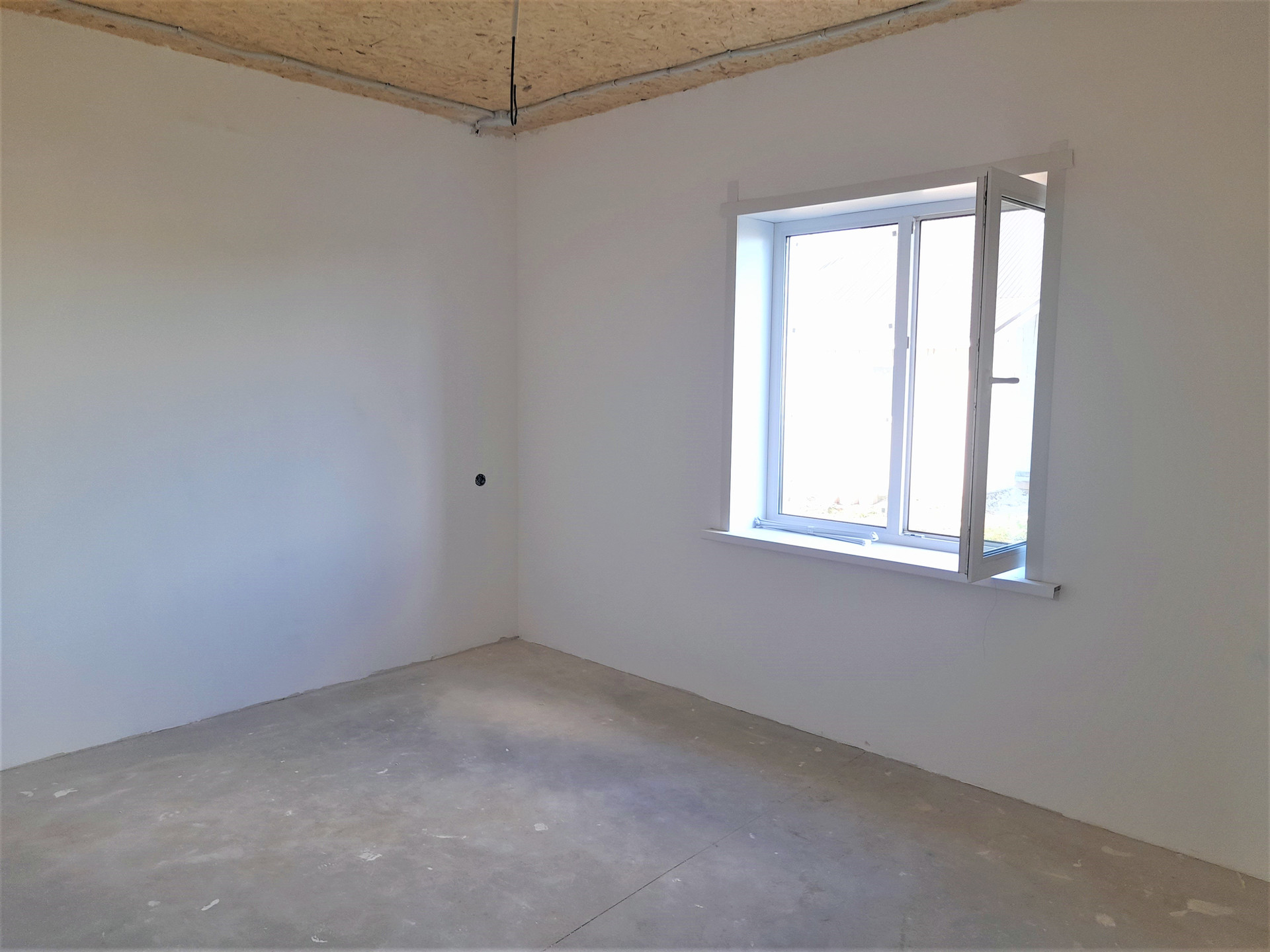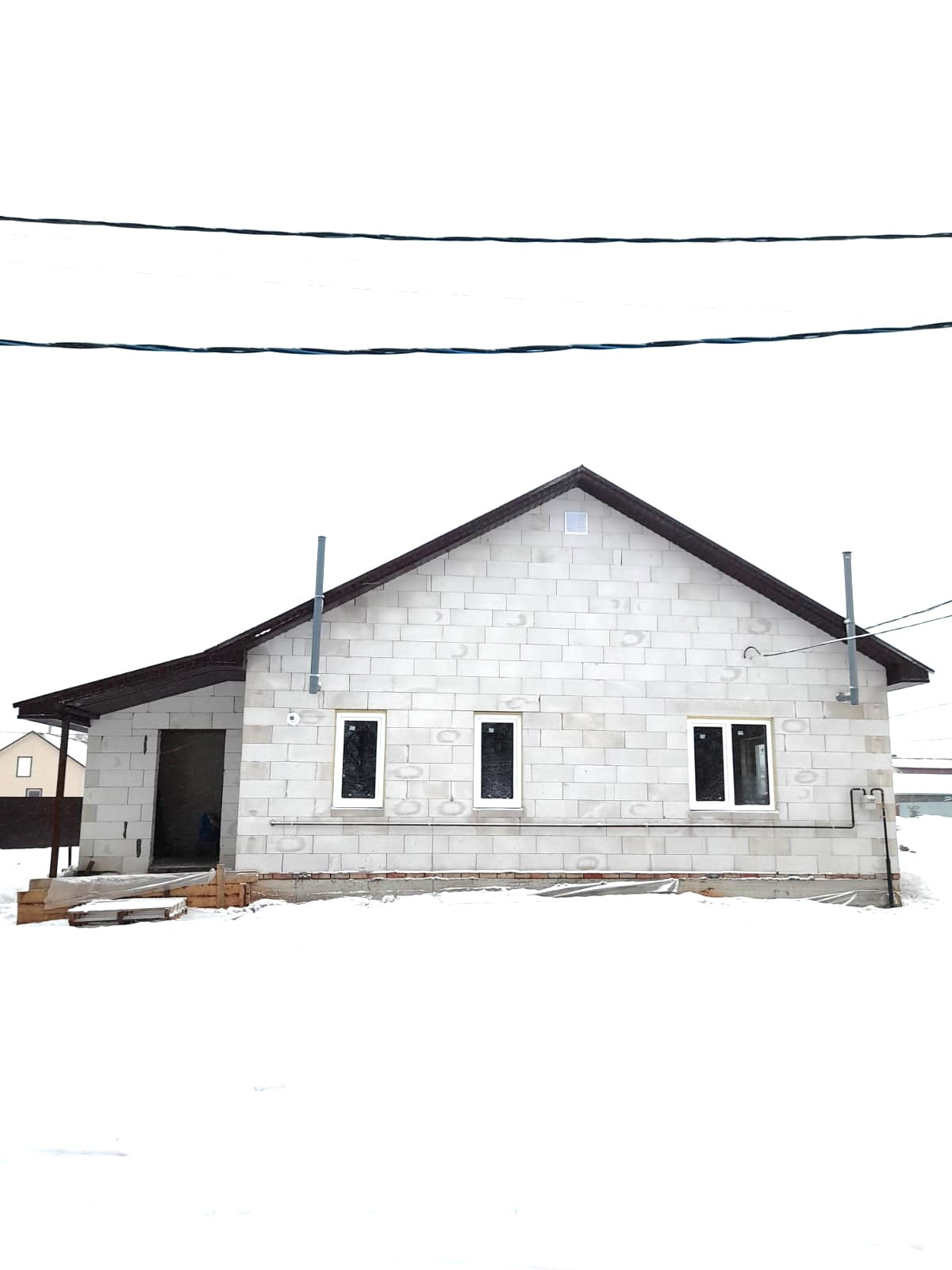 Стены под обои, разводка электрики по 1-ому этажу, отопление - теплые полы по 1-ому этажу, вода - скважина своя (вода чистая, без запаха и железа), рядом есть центральная вода (можно подключиться); сливная яма подключена (3 кольца); свет 3 фазы, 380Вт, 15 кВт, введён в дом (лицевой счёт открыт); газ есть, потолки подшиты USВ-листами, крыша утеплена.