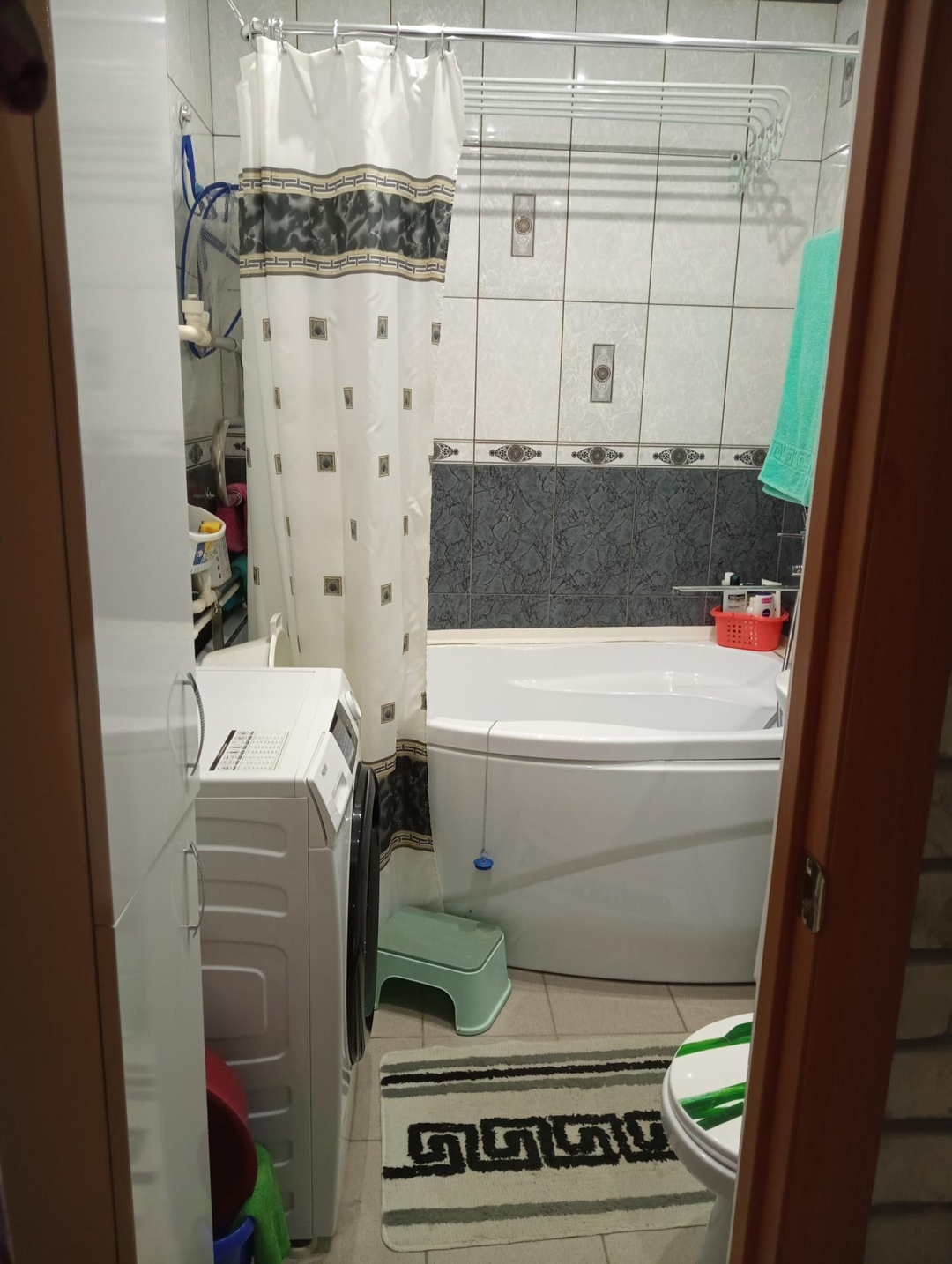 просторный, выложен кафельной плиткой. Вся сан.техника новая. Есть место в  с/у. под стиральную машинку. Большая кухня со встроенным кухонным гарнитуром, есть место для установки дивана.