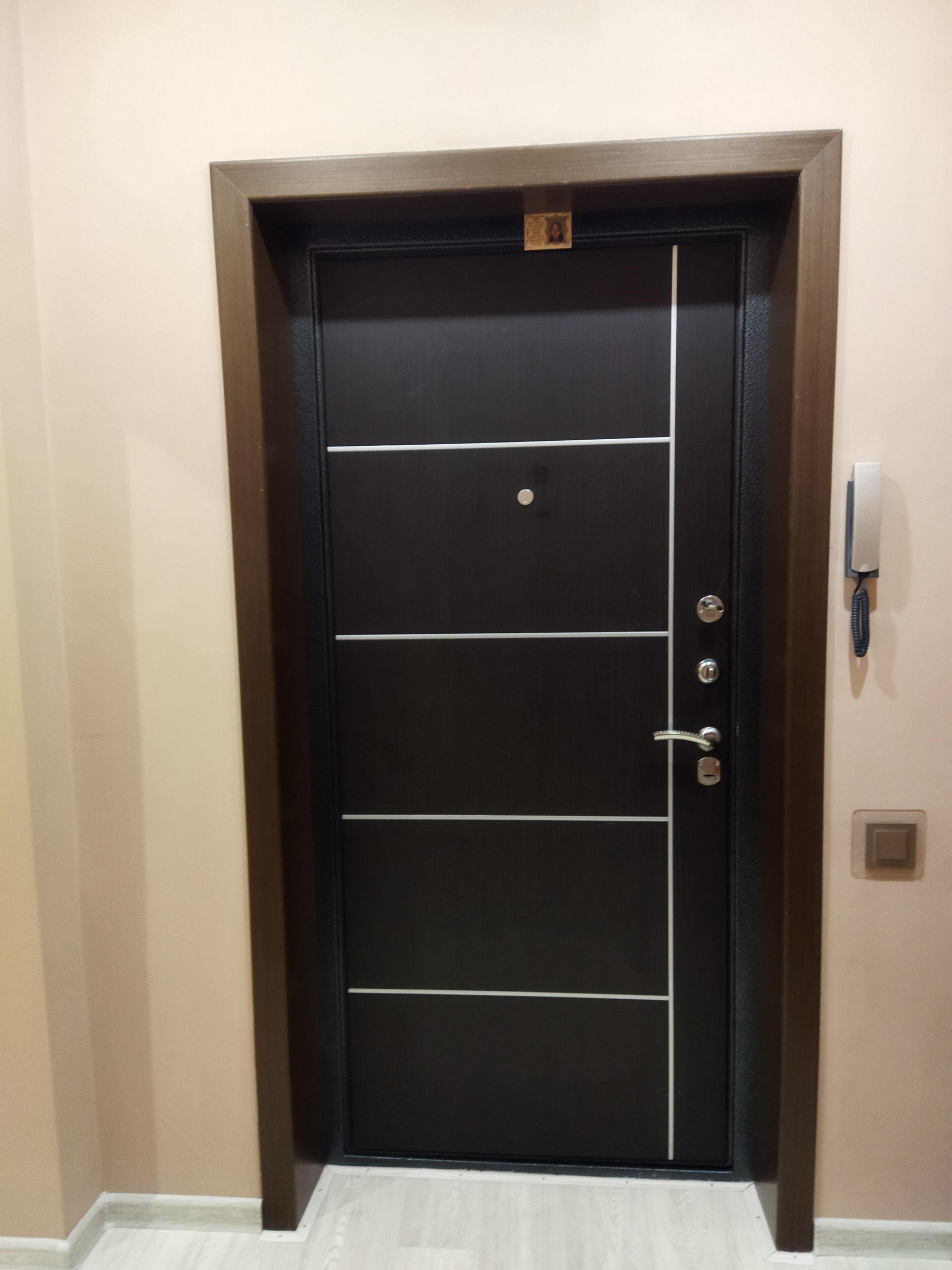 Общий коридор на две квартиры, закрывается. Соседи приличные, спокойные. А сверху их нет вовсе, и разница очень ощутима, если раньше жили на средних этажах. Чердак сухой, высокий, проблем с крышей нет. Установлены счётчики на воду и газ, домофон, WiFi+ТВ от Ростелеком.