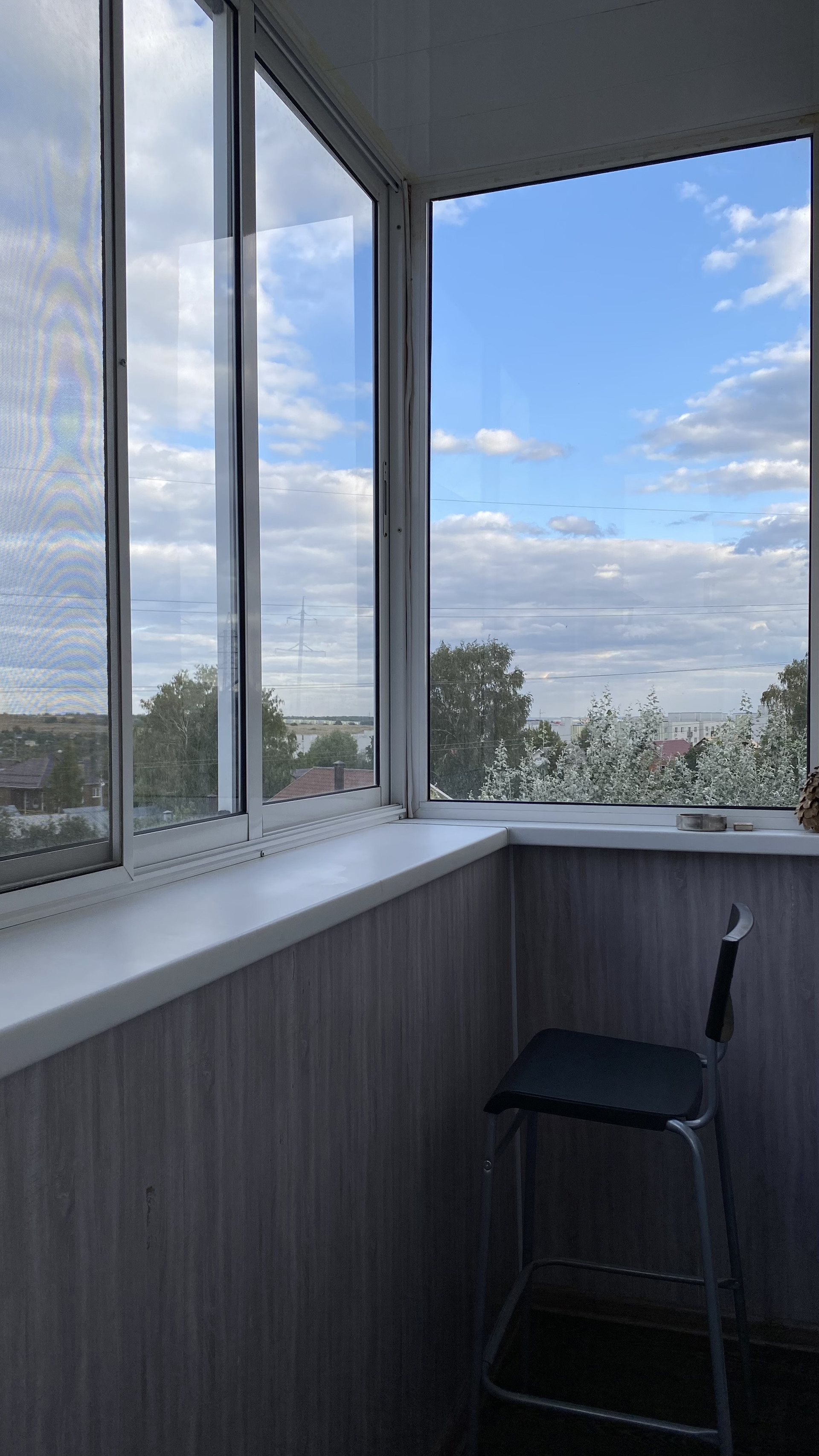 Просторный видовой балкон с выносом, полностью застеклен, внутри отделка. Рядом лес, свежий воздух