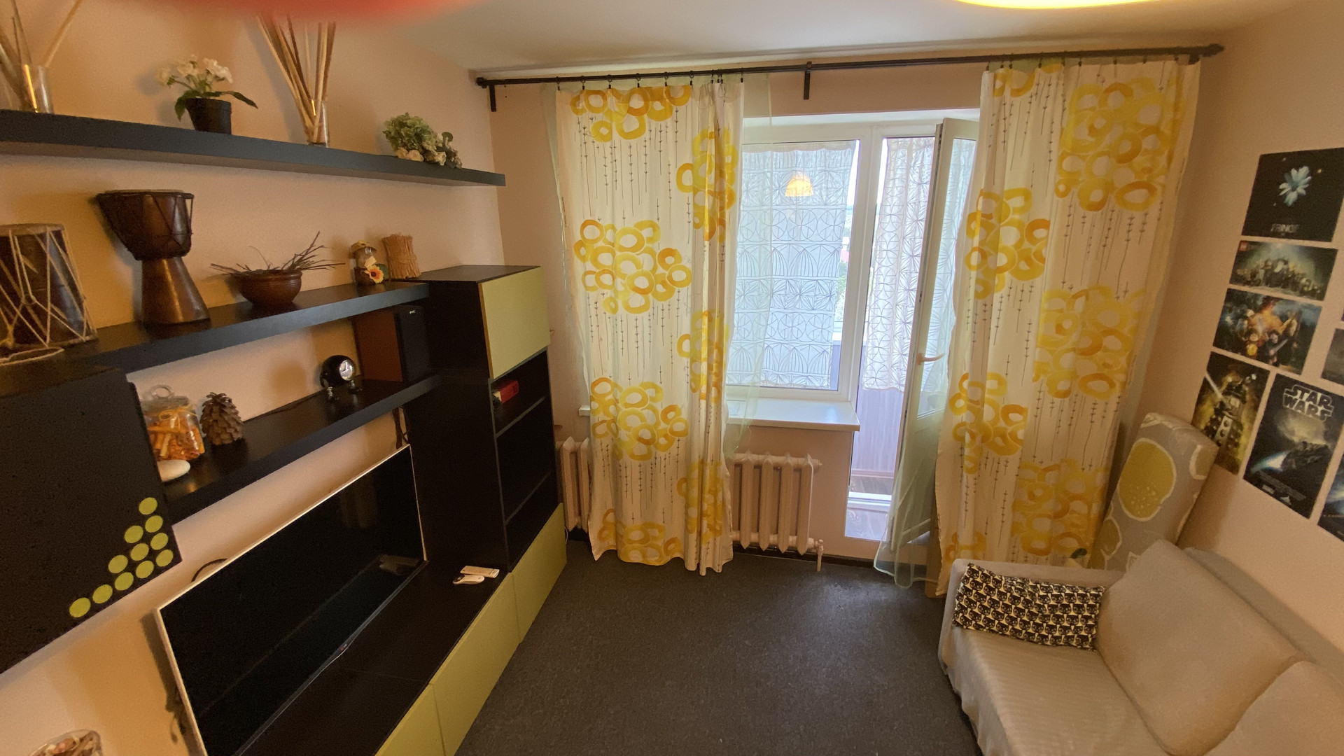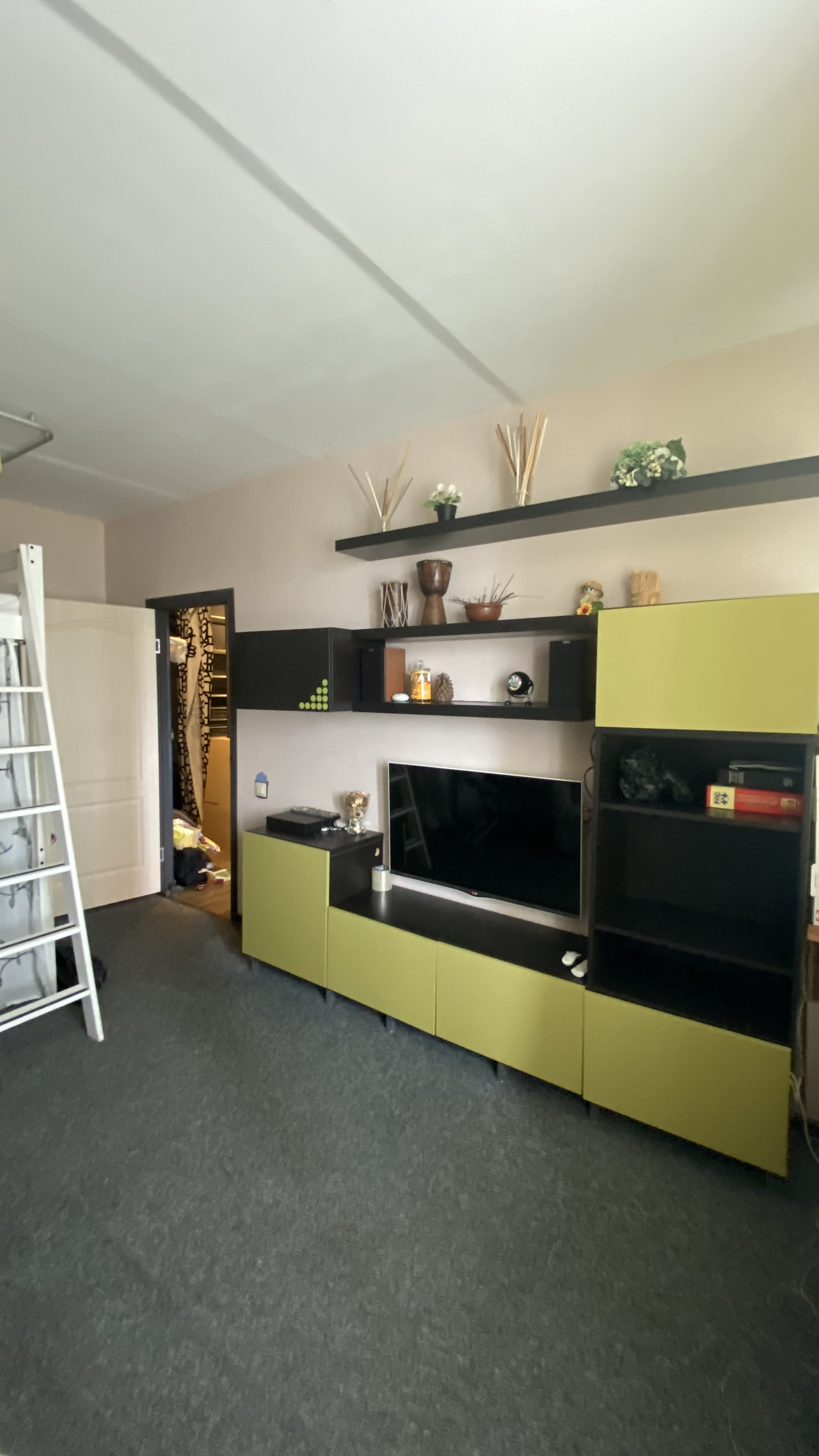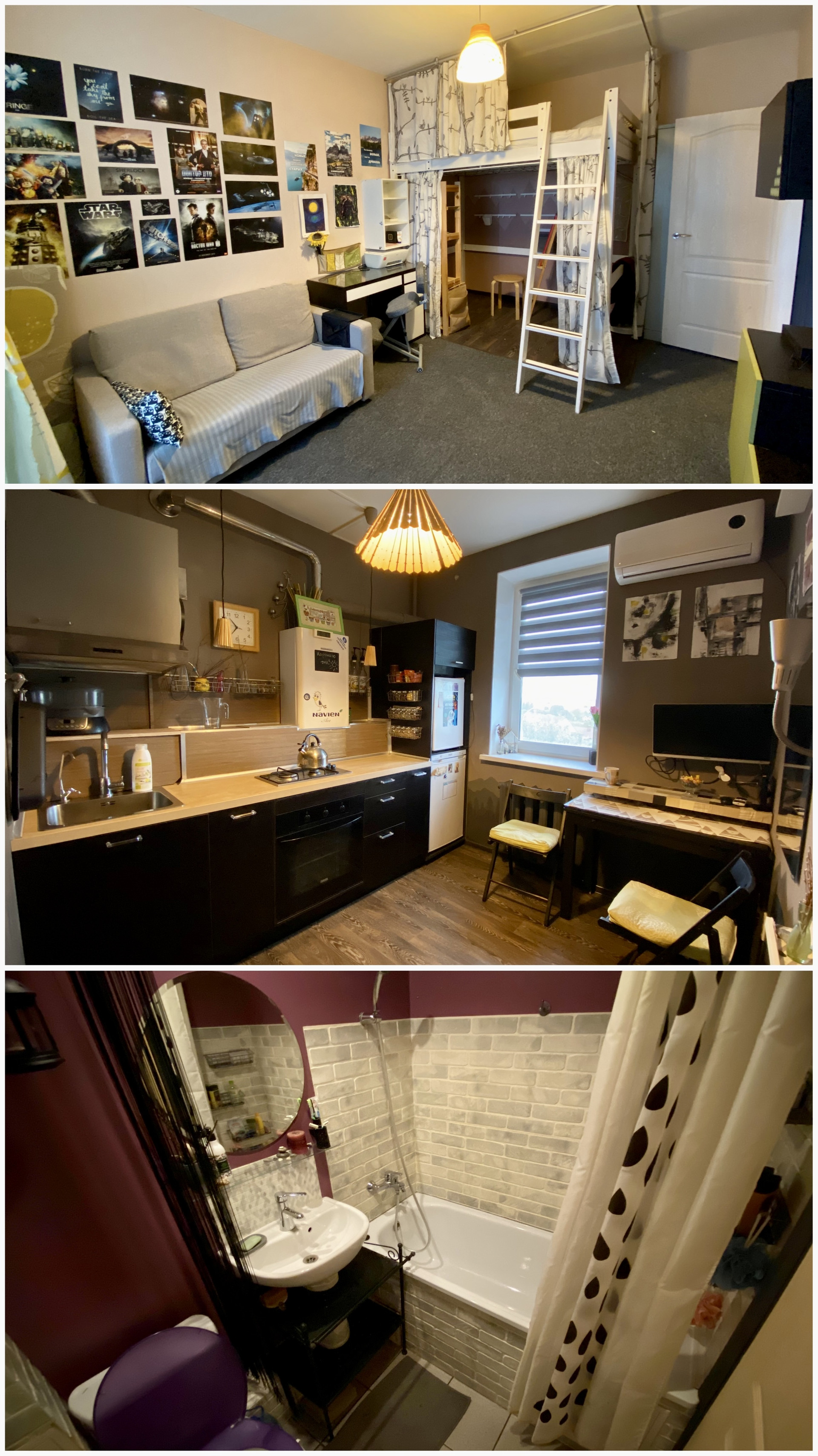 Остается ВСЯ мебель и техника. В комнате письменный стол, раскладной диван, шкафчики. Двуспальная кровать-чердак с дорогим ортопедическим матрасом. Спальная зона отгорожена занавеской. Под кроватью можно сделать рабочее место, мастерскую или просто место для отдыха. Вся мебель из икеи!
