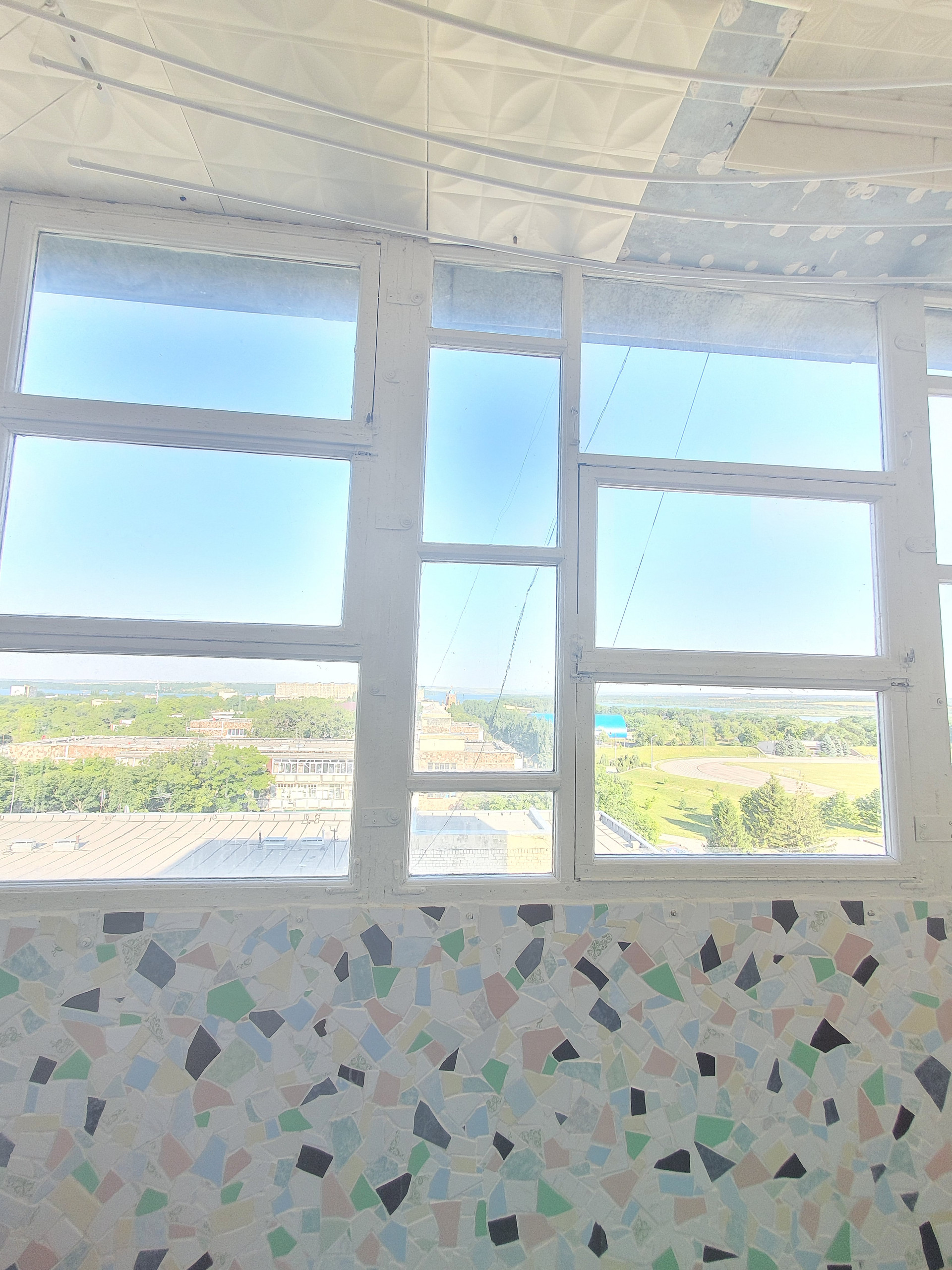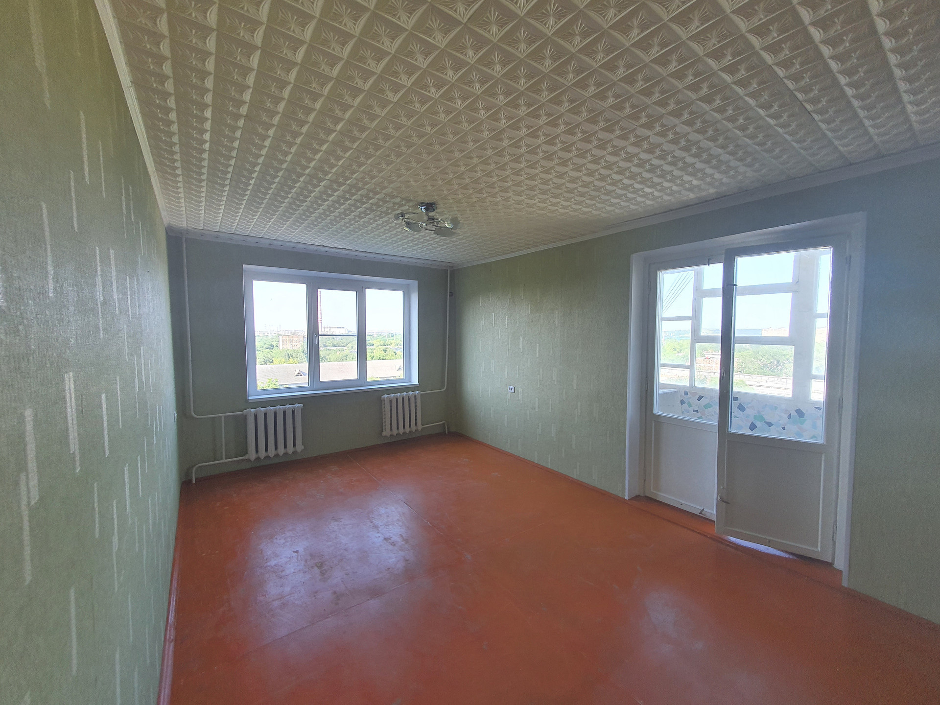 Великолепный вид открывается с лоджии (стадион, сцена ДК, зелёный сквер). Окна выходят во двор на 16 школу и сквер.