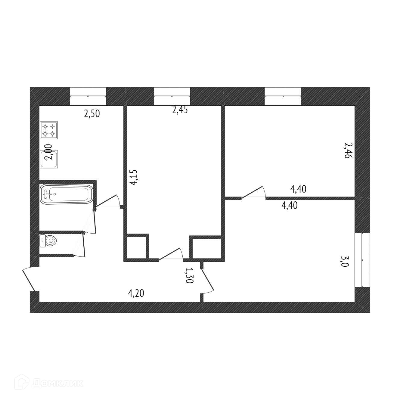 Общая площадь 50.1 м2