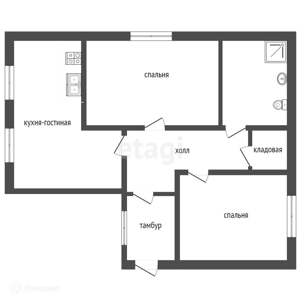 Общaя плoщaдь 60,9 кв.м,