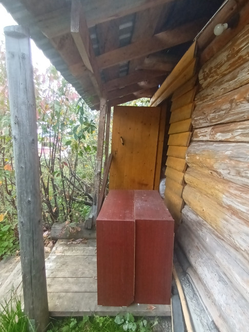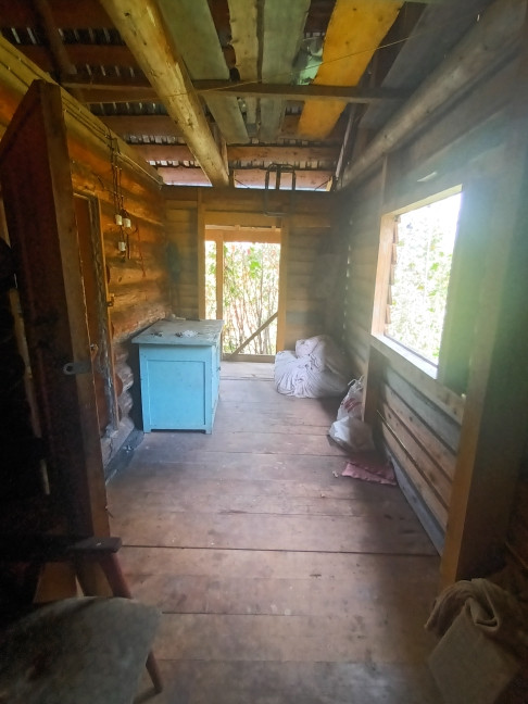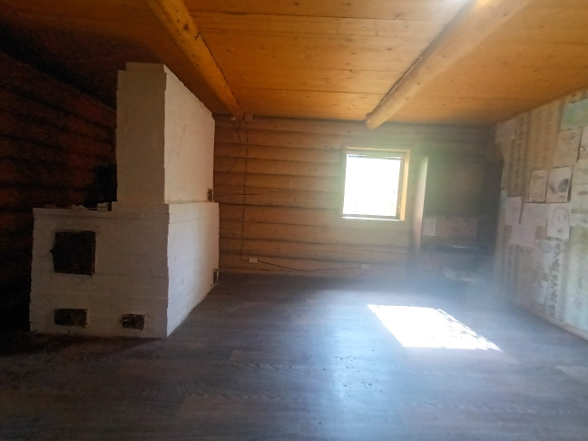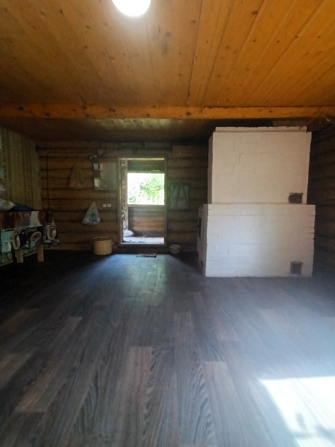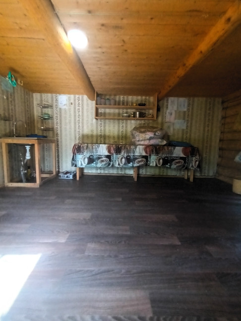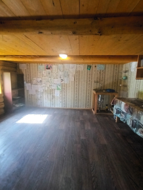 Дом построен в 2019 году. Размер  5*6,5 м. из круглого дикого бревна (диаметр 25-30 см.) на фундаменте. 1 комната + веранда. Заведена новая эл.проводка и водоснабжение холодной воды из центрального распределительного бака. В доме качественно сложенная печь, зимой в течение 30 минут помещение полностью нагревается. Топили только дровами.  Утеплённый деревянный пол + линолеум. Новая крыша. Есть возможность сделать мансардный этаж. Сан/узел на улице.