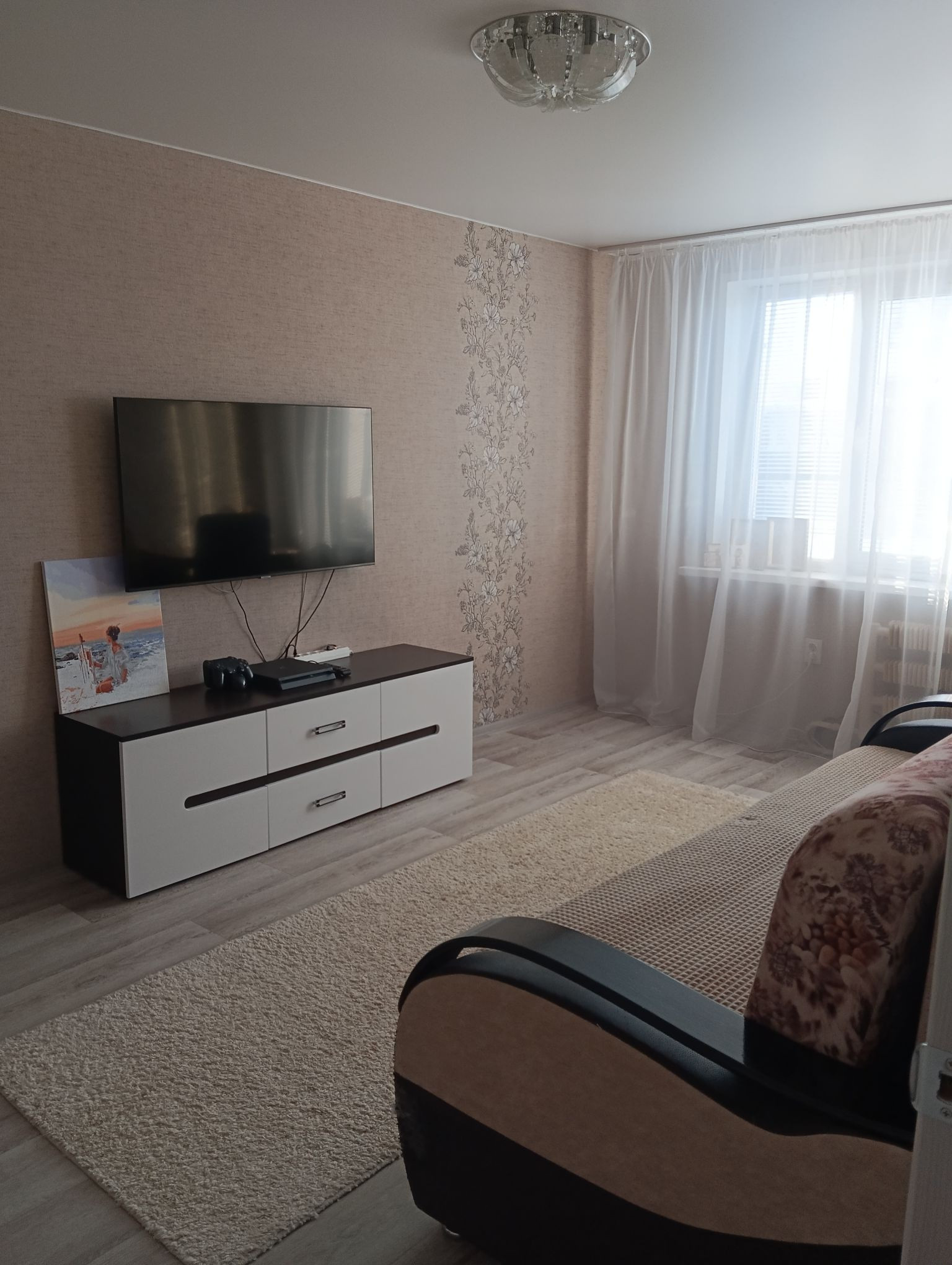 В квартире выровненный пол, стены, новая проводка и сантехника. Пластиковые окна, натяжные потолки.