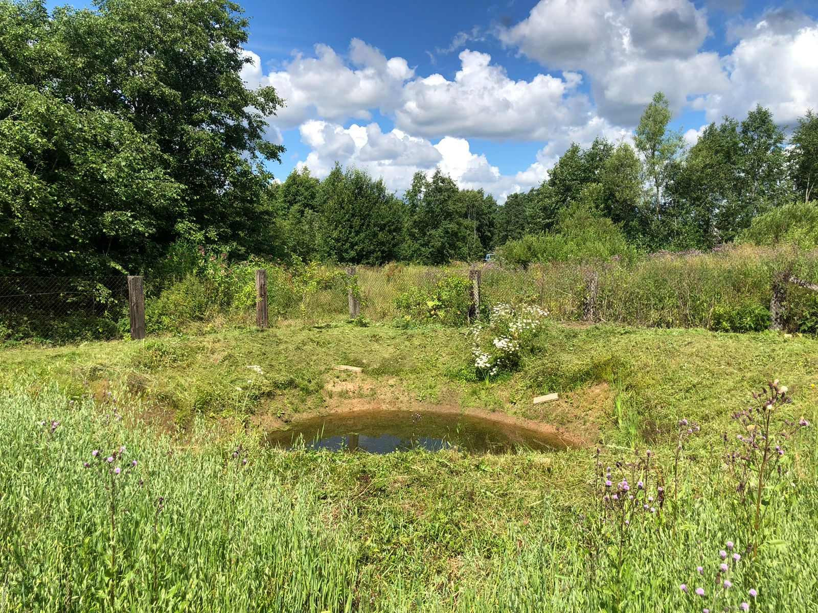Участок (14,2 сотки) с плодородной землей, ежегодно обрабатывается, разбит молодой сад (деревья, кустарники), на территории свой пруд.