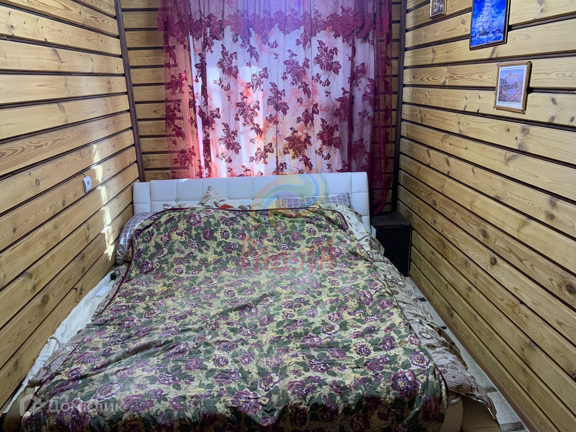Первая спальня 12.39м2. Стены отделаны вагонкой. Новая современная люстра с разными режимами подсветки, окна выходят во двор нашего участка.