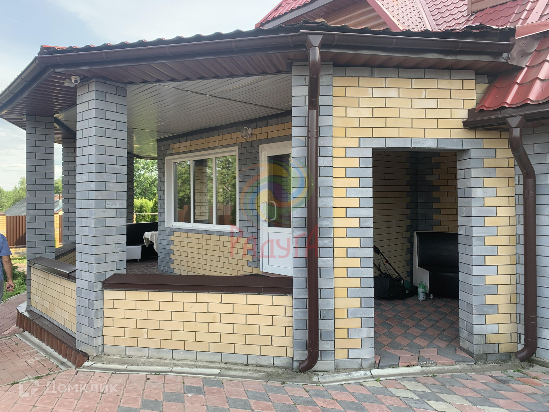 Кирпичная пристройка, с мангалом и удобным диваном с креслами для отличного времяпрепровождения для вас и вашей семьи.