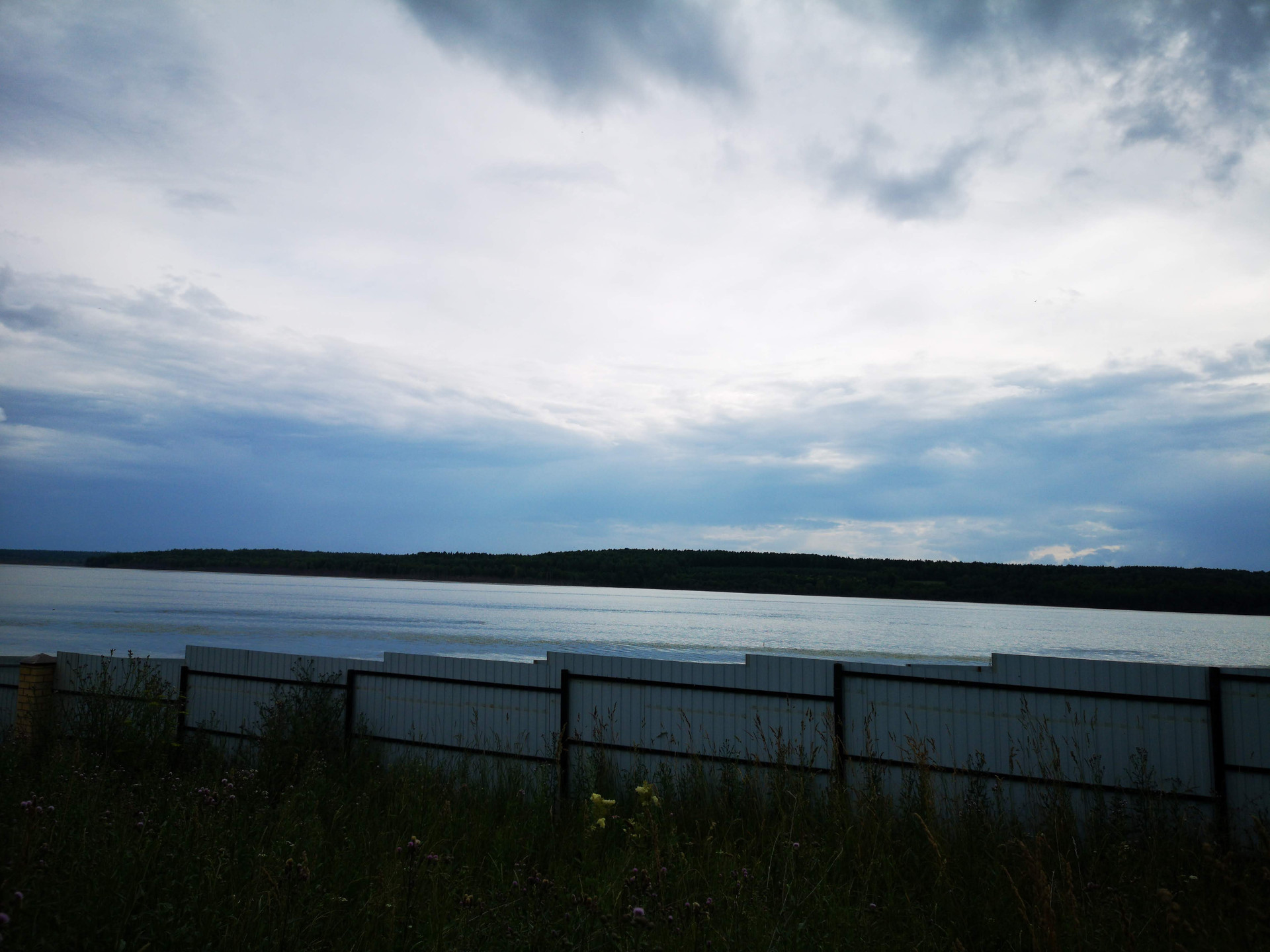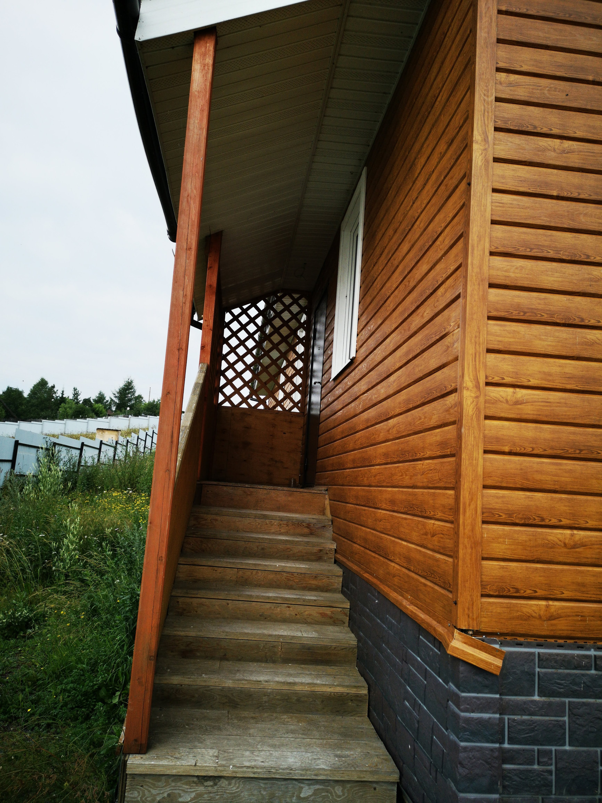 Гараж. Высокий хороший забор.