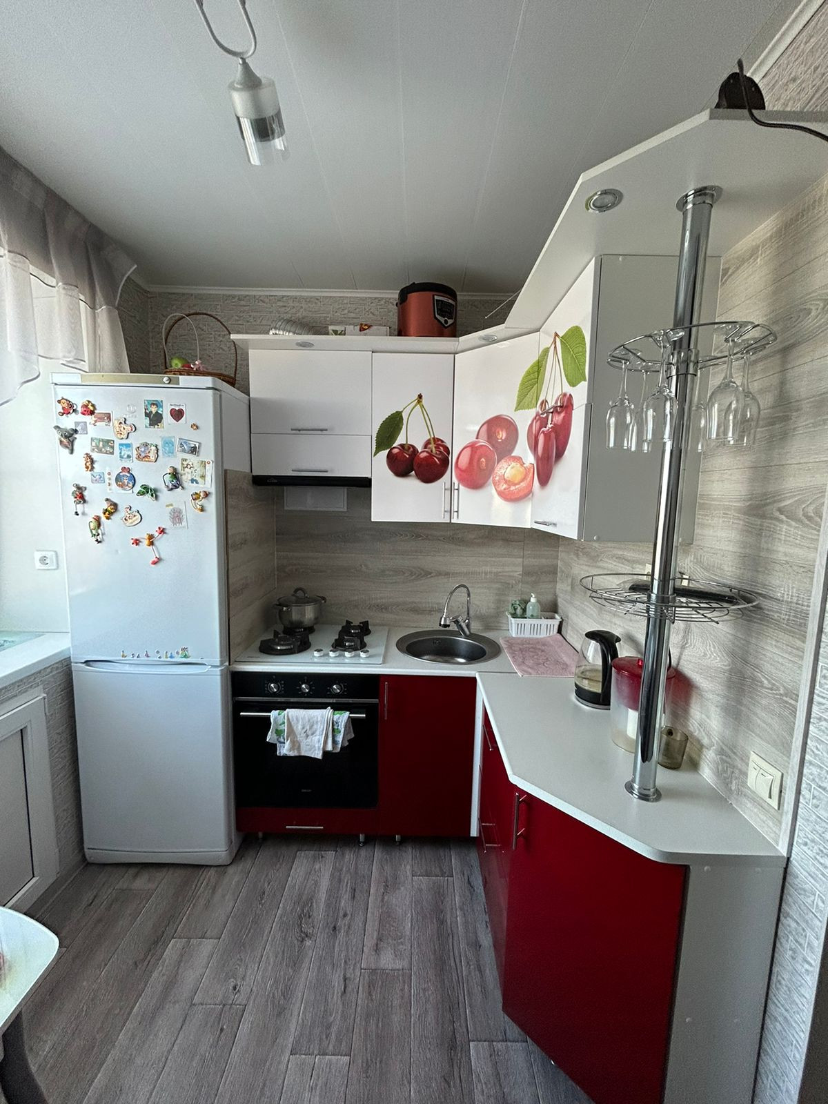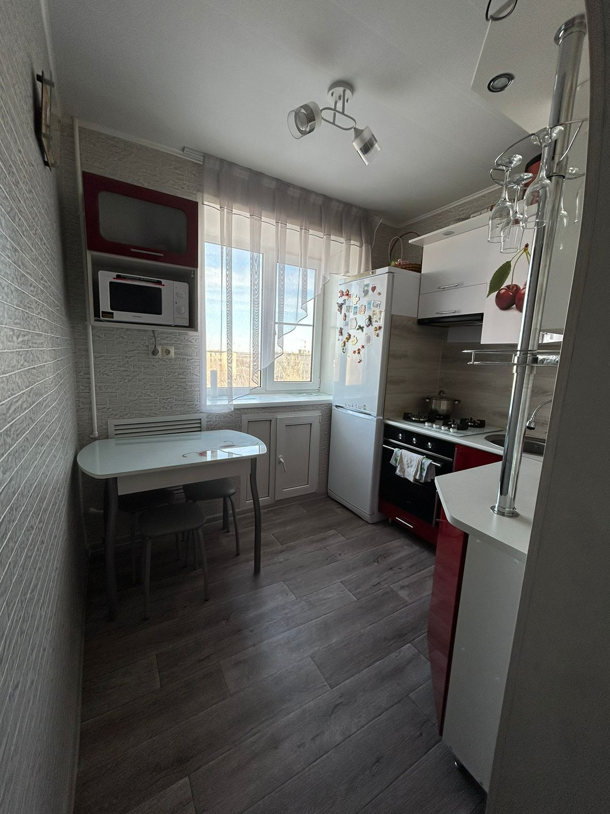 В кухне выравненны стены, полностью произведена замена проводки, батарея и газовая труба утопленны в стену, для удобства,