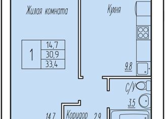 Общая площадь: 33.4 м2