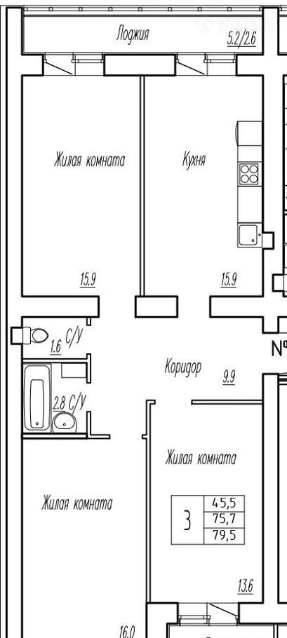 Общая площадь 75.7 м2