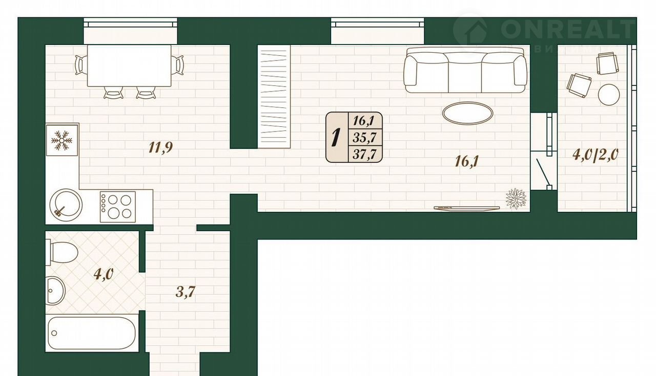 Балкон, лоджия 1 лоджия