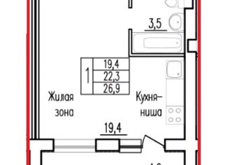 Общая площадь: 26.9 м2