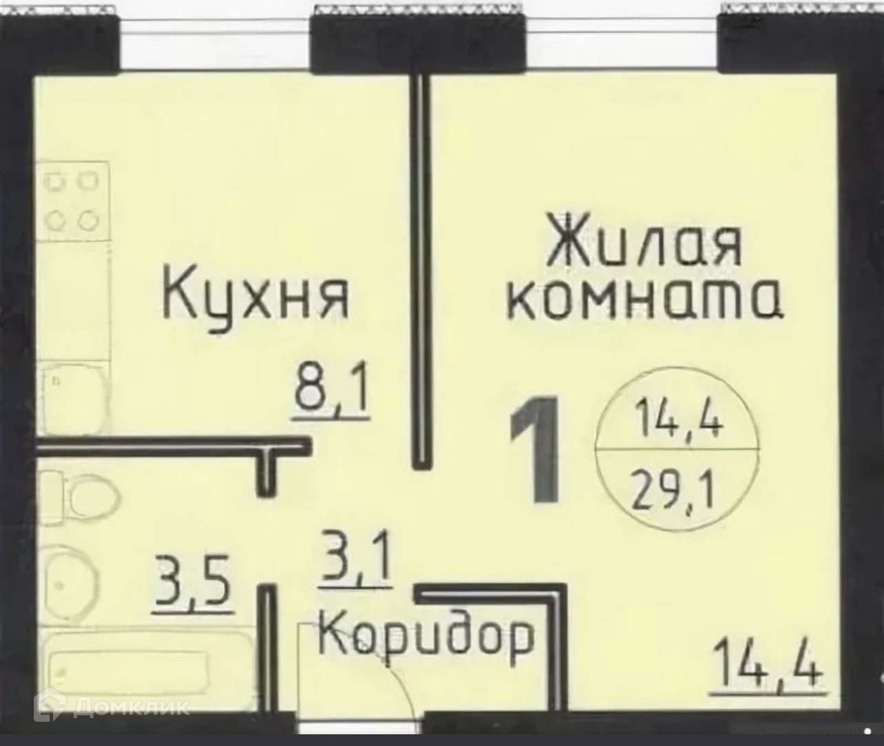 Жилая площадь 14.4 м2