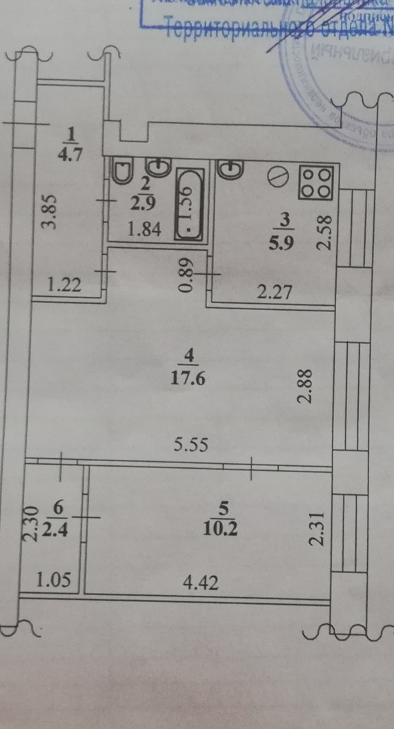 Общая площадь 43.7 м2