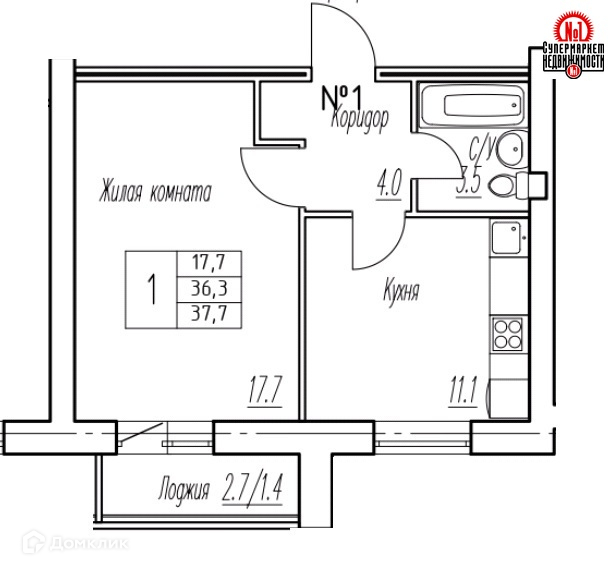 Балкон, лоджия 1 лоджия