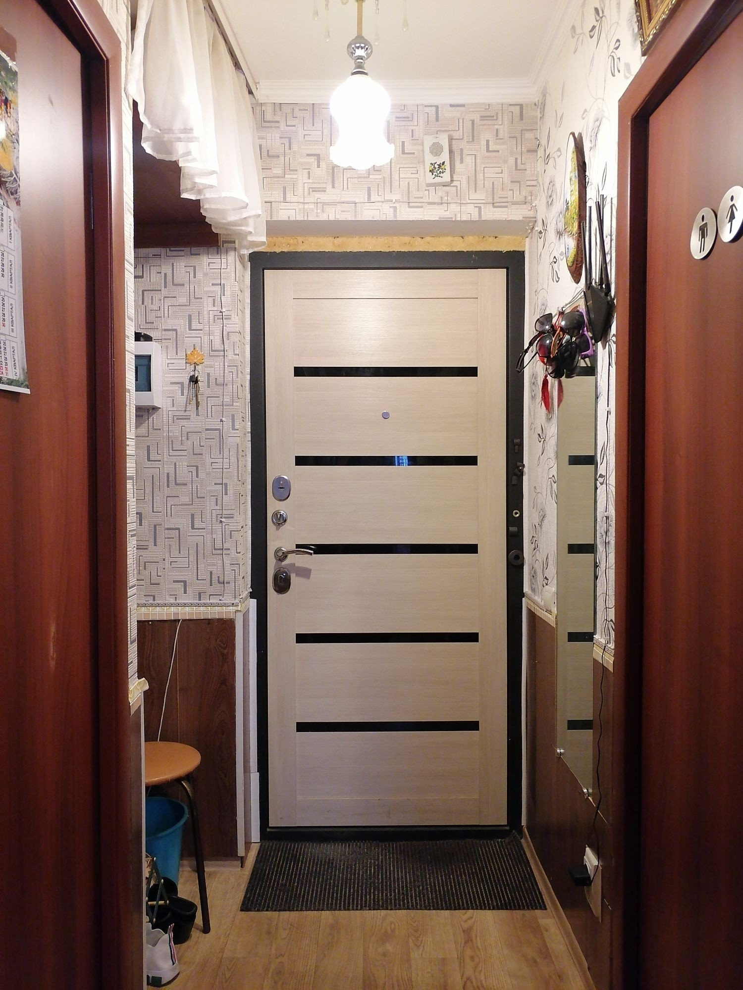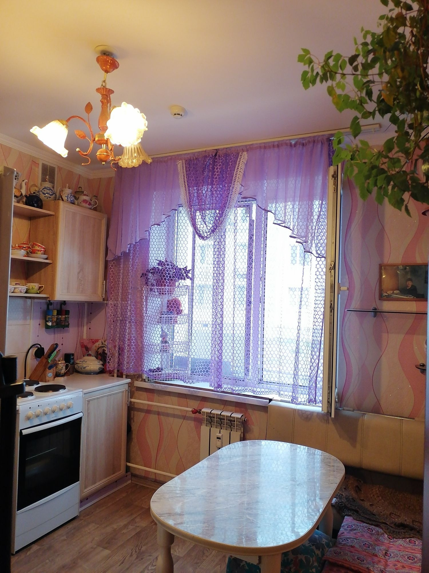 Центральное отопление, горячая и холодная вода. Электрическая плита.