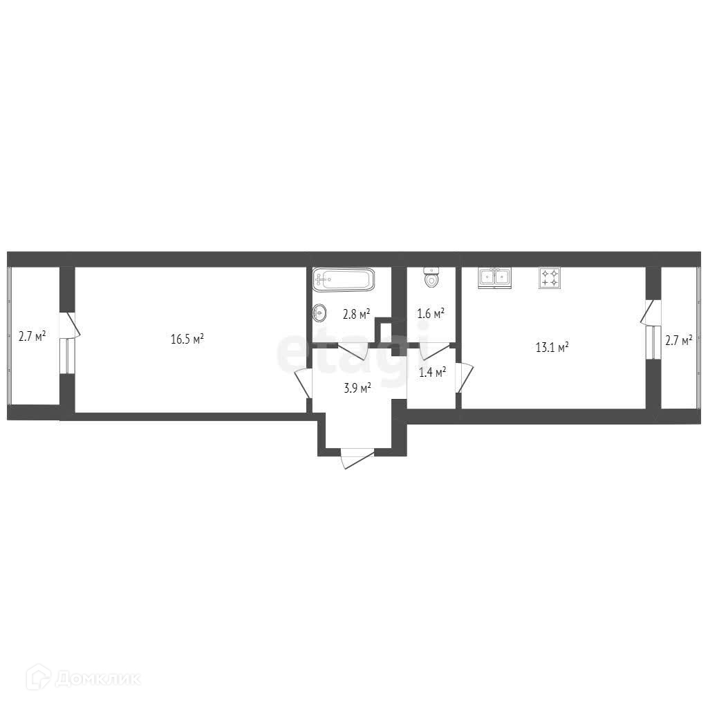 Общая площадь 42.1 м2