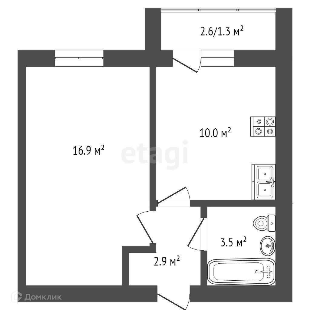 Общая площадь 35.4 м2
