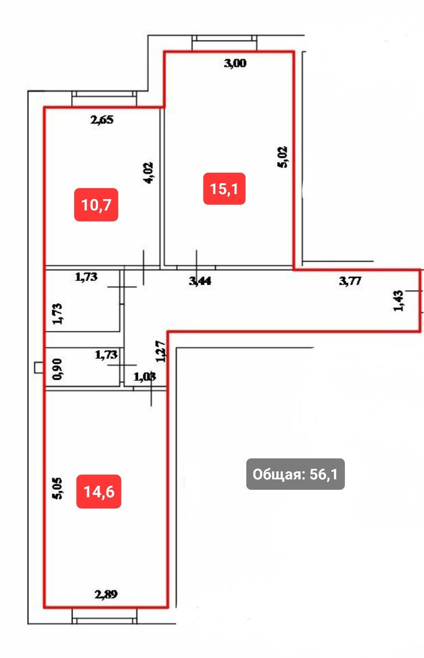 Общая площадь 56.1 м2