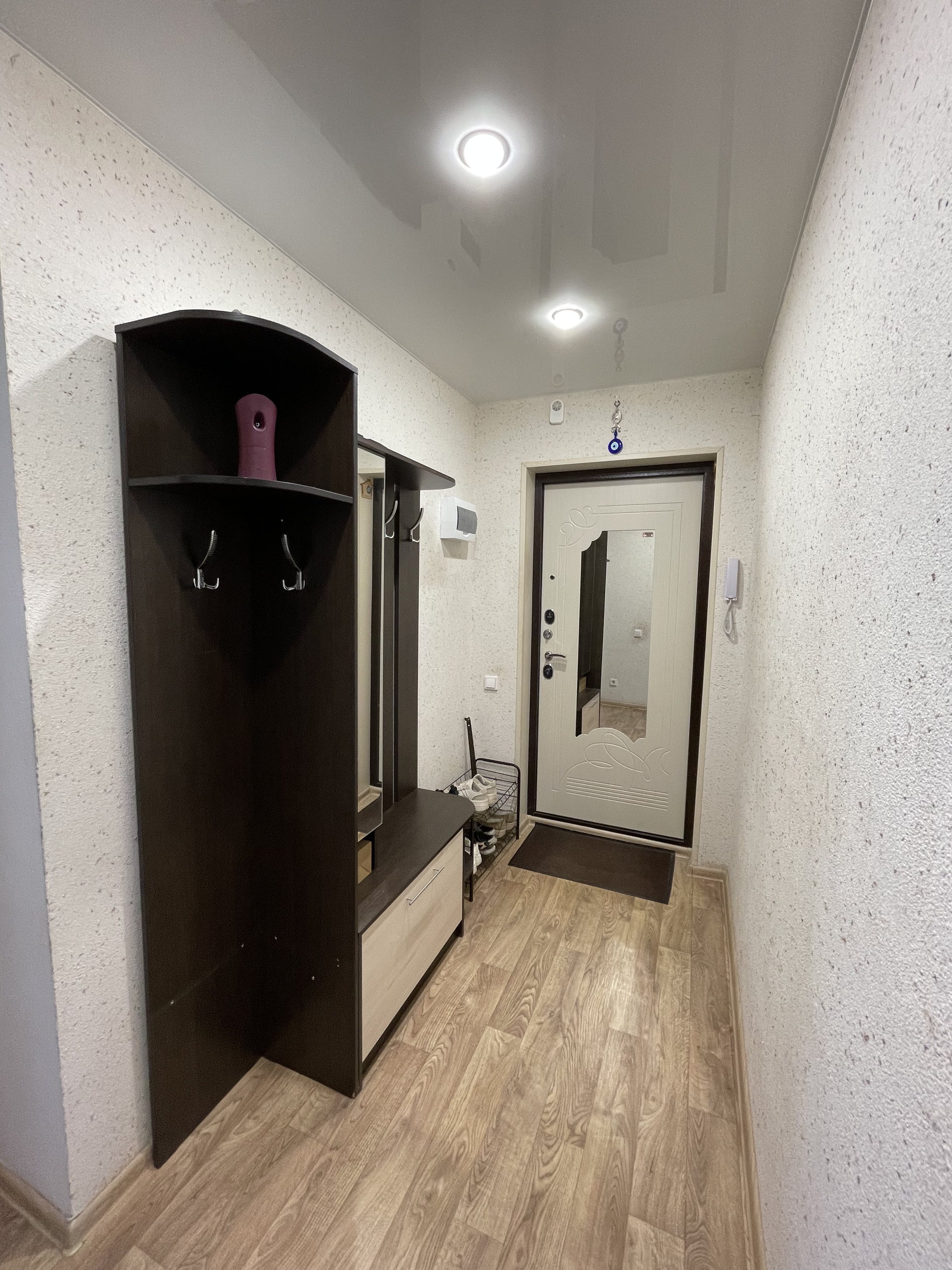 Просторная и светлая квартира на две стороны. Очень теплая. В квартире хороший ремонт, остается кухонный гарнитур с встроенной техникой, холодильник, стиральная машина, кондиционер, встроенный шкаф и прихожая. Санузел совмещённый, что является удобным решением для экономии пространства.