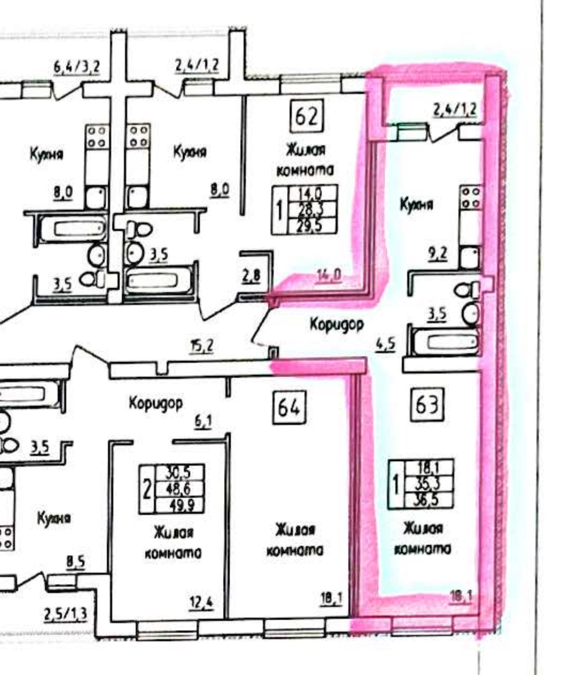 Жилая площадь 18.1 м2