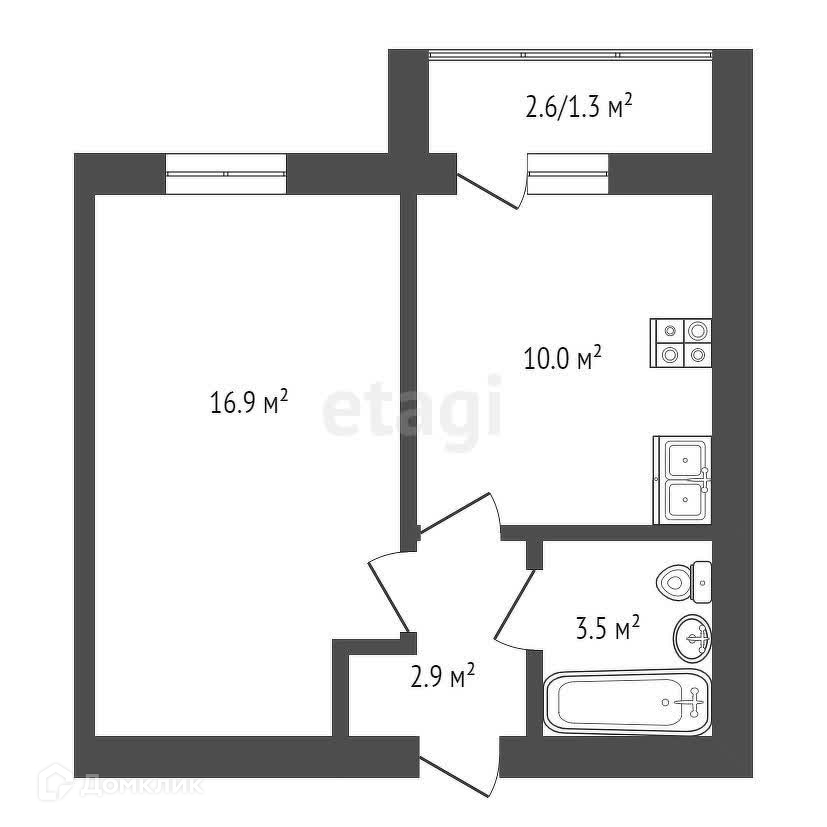 Балкон, лоджия 1 балкон