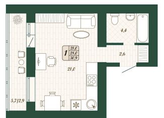 Квартира на продажу студия, 31.6 м2