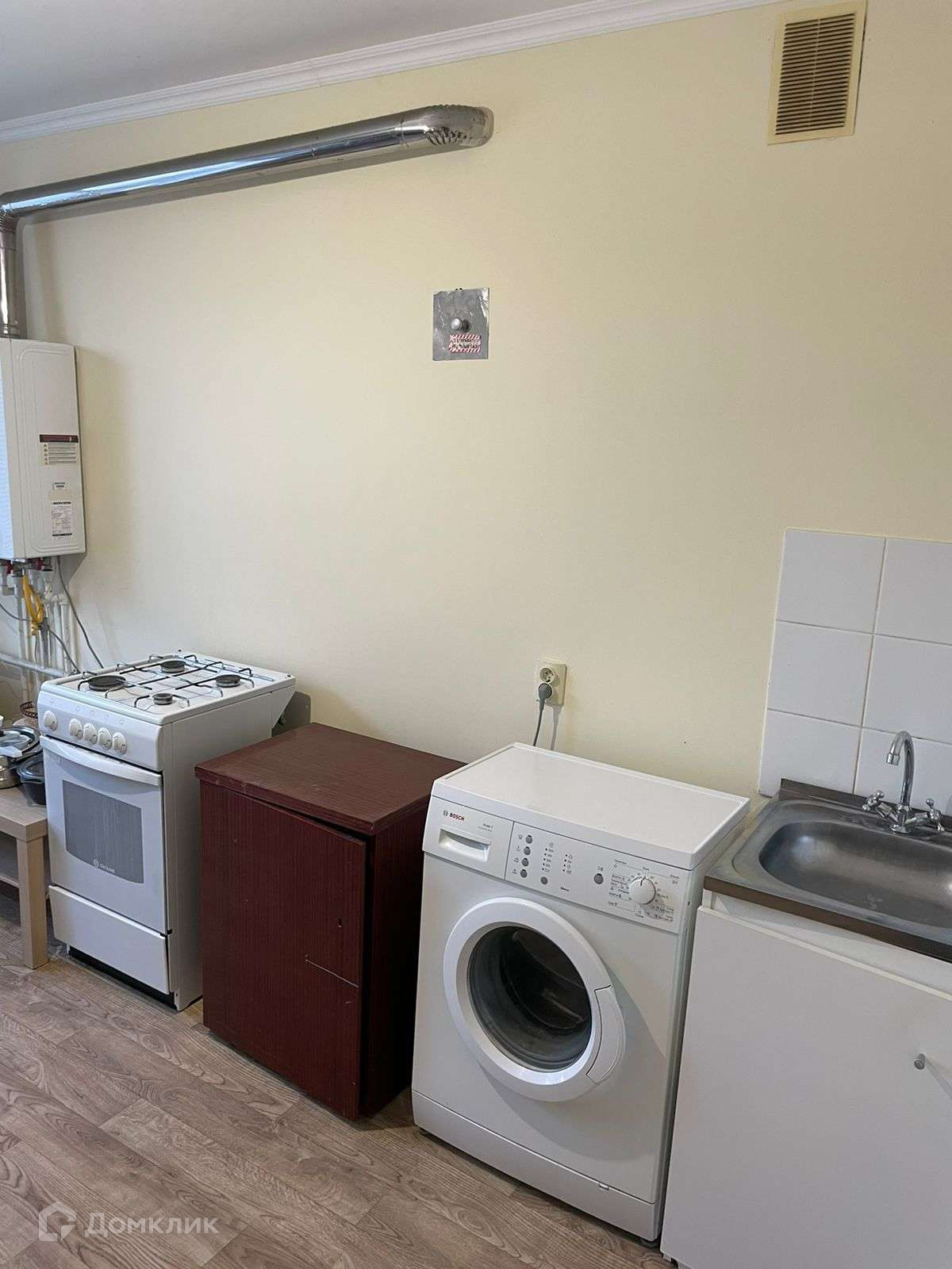 Косметический ремонт; Мебелерована:диван;комод;телевизор;холодильник;стиралка;плита;кухонный стол.