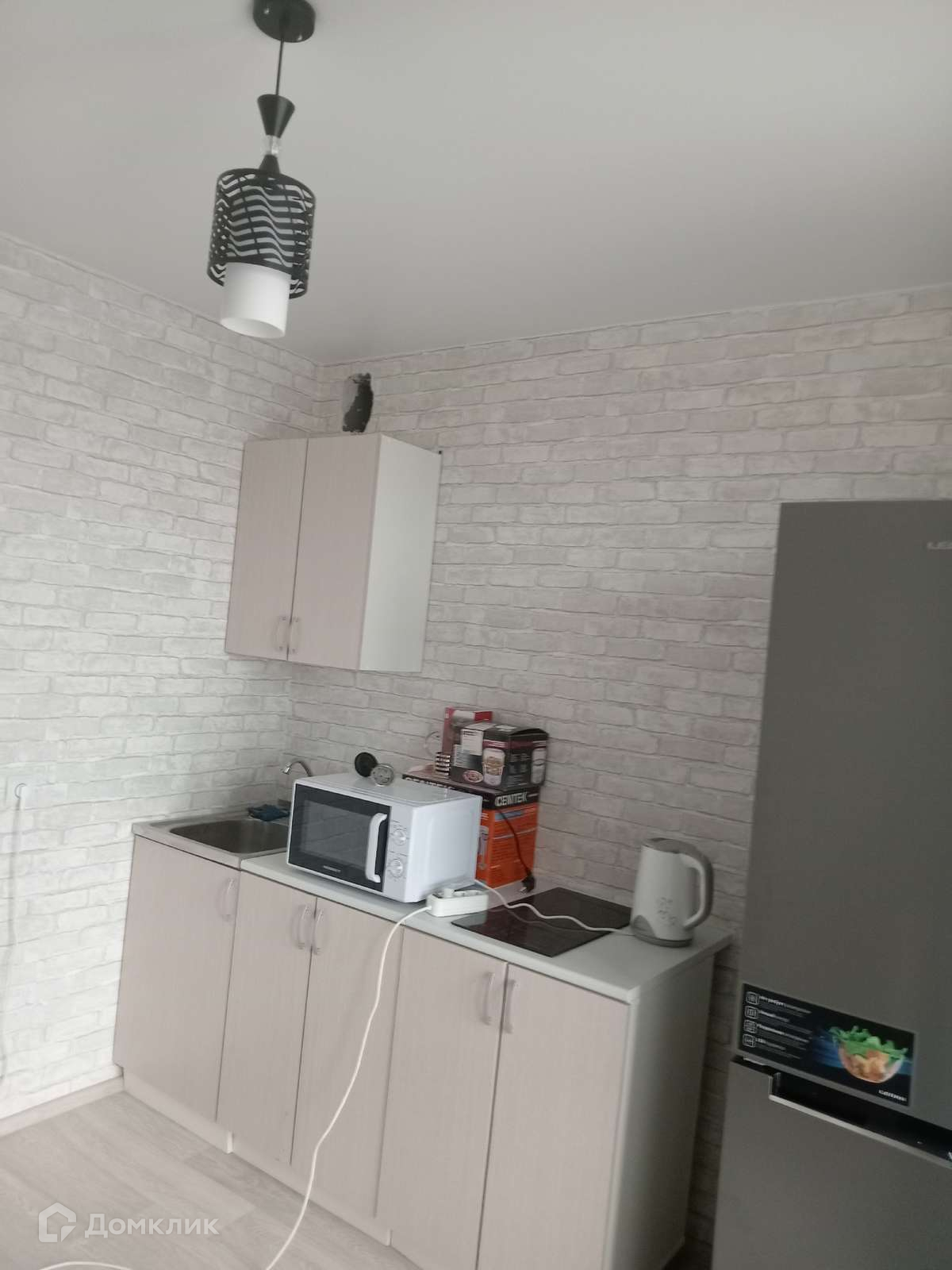 В квартире кухня с холодильником , плитой , микроволновкой; комната с диваном , машину стиральную по необходимости установим.