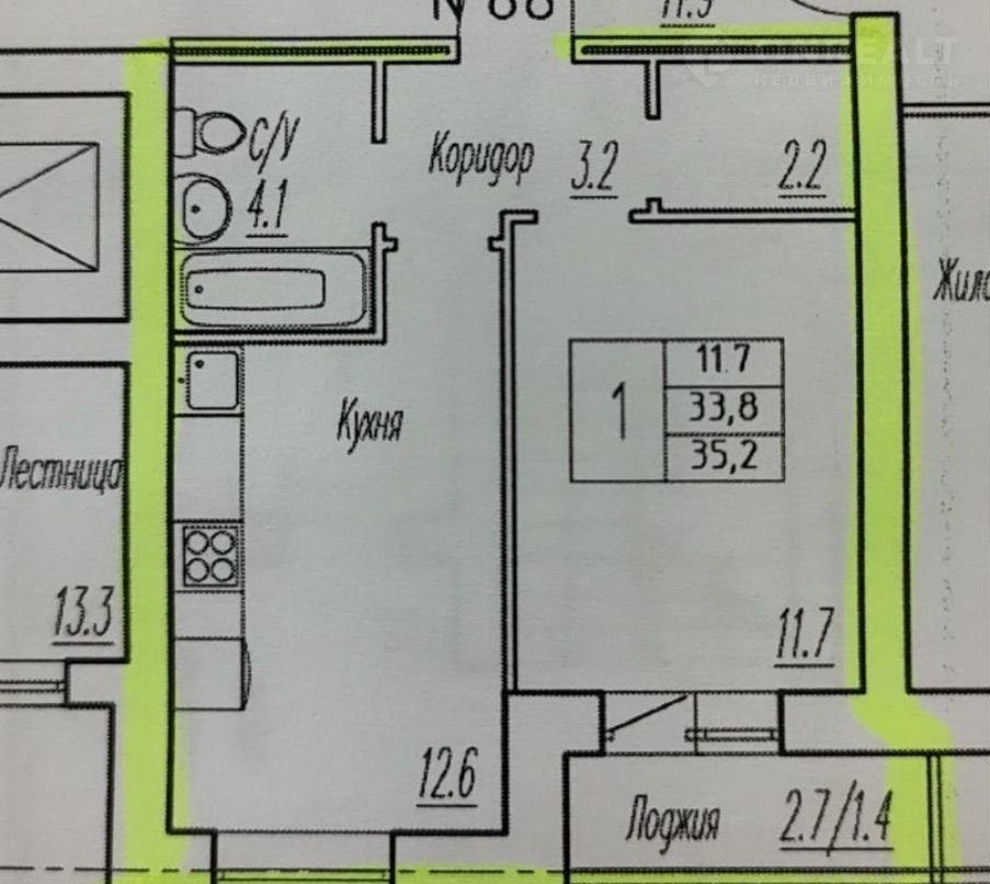 Балкон, лоджия 1 лоджия
