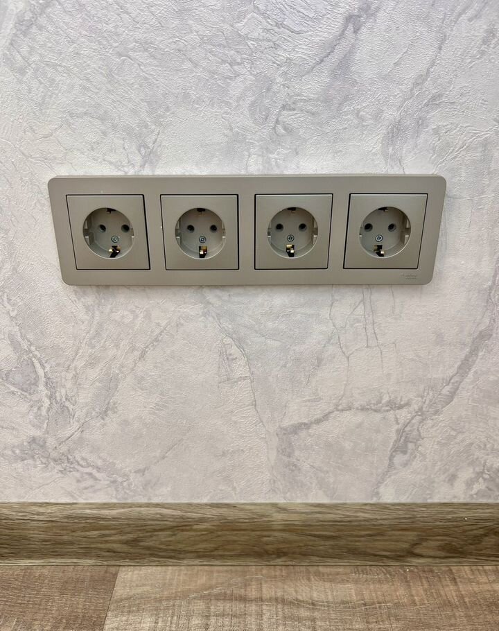 Дорогие люстры, сделаны встроенные ниши для штор. Огромное количество розеток по всей квартире .