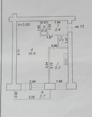 Площадь кухни 5.3 м2