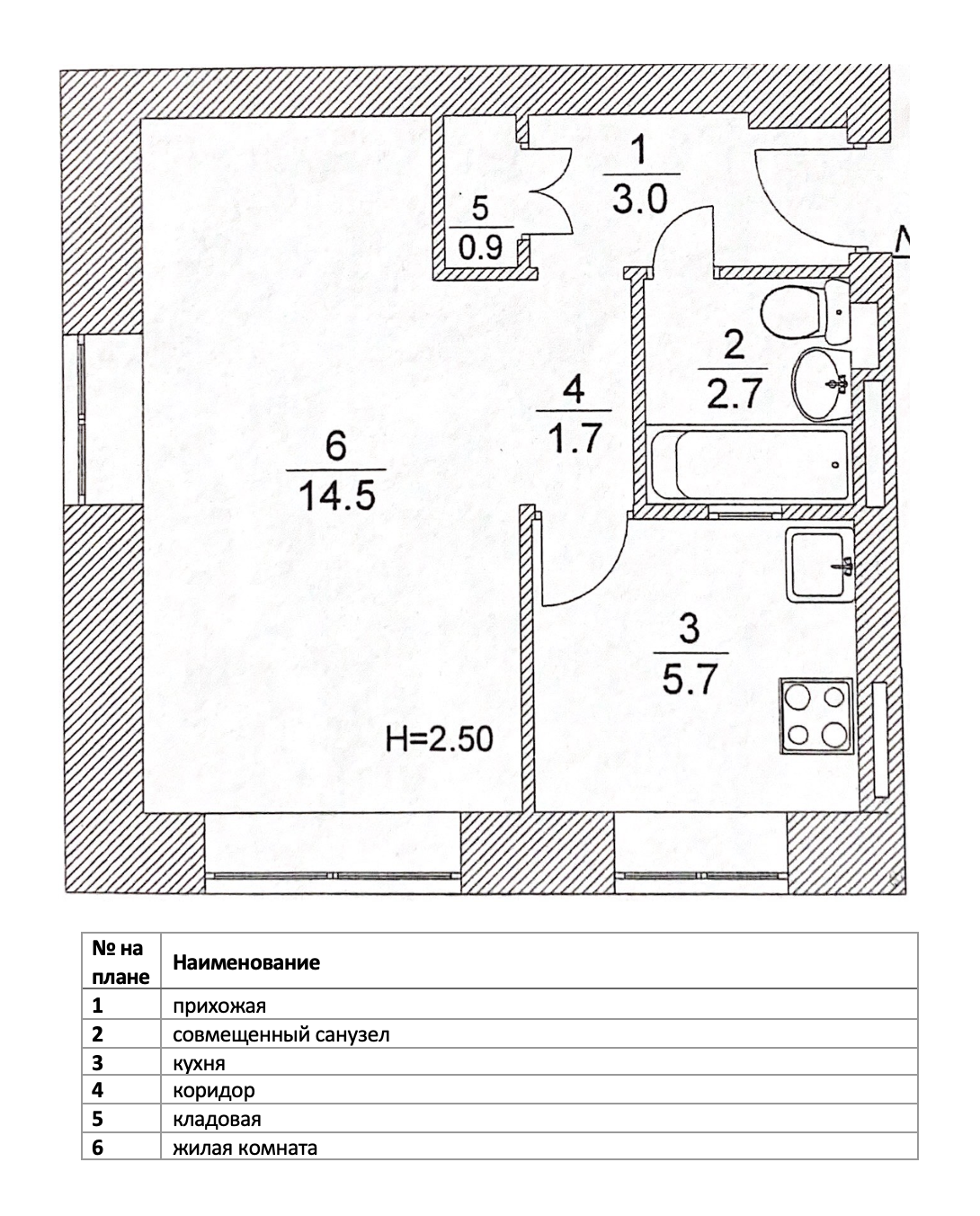 Высота потолков 2.5 м