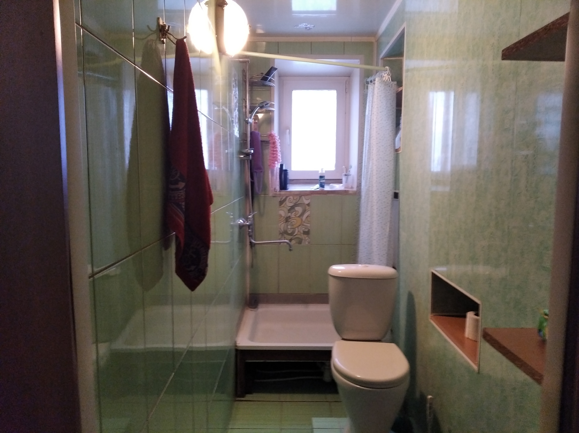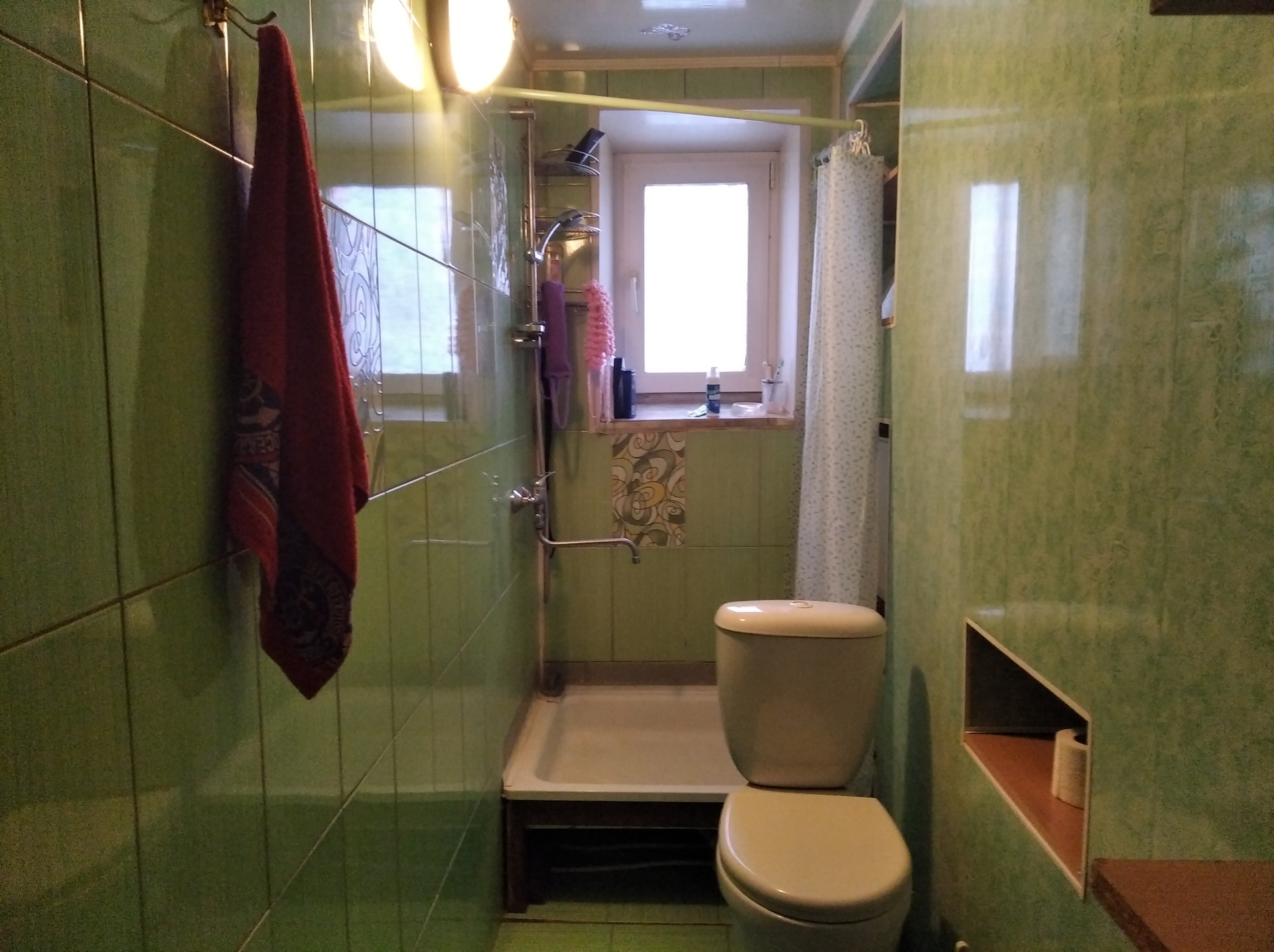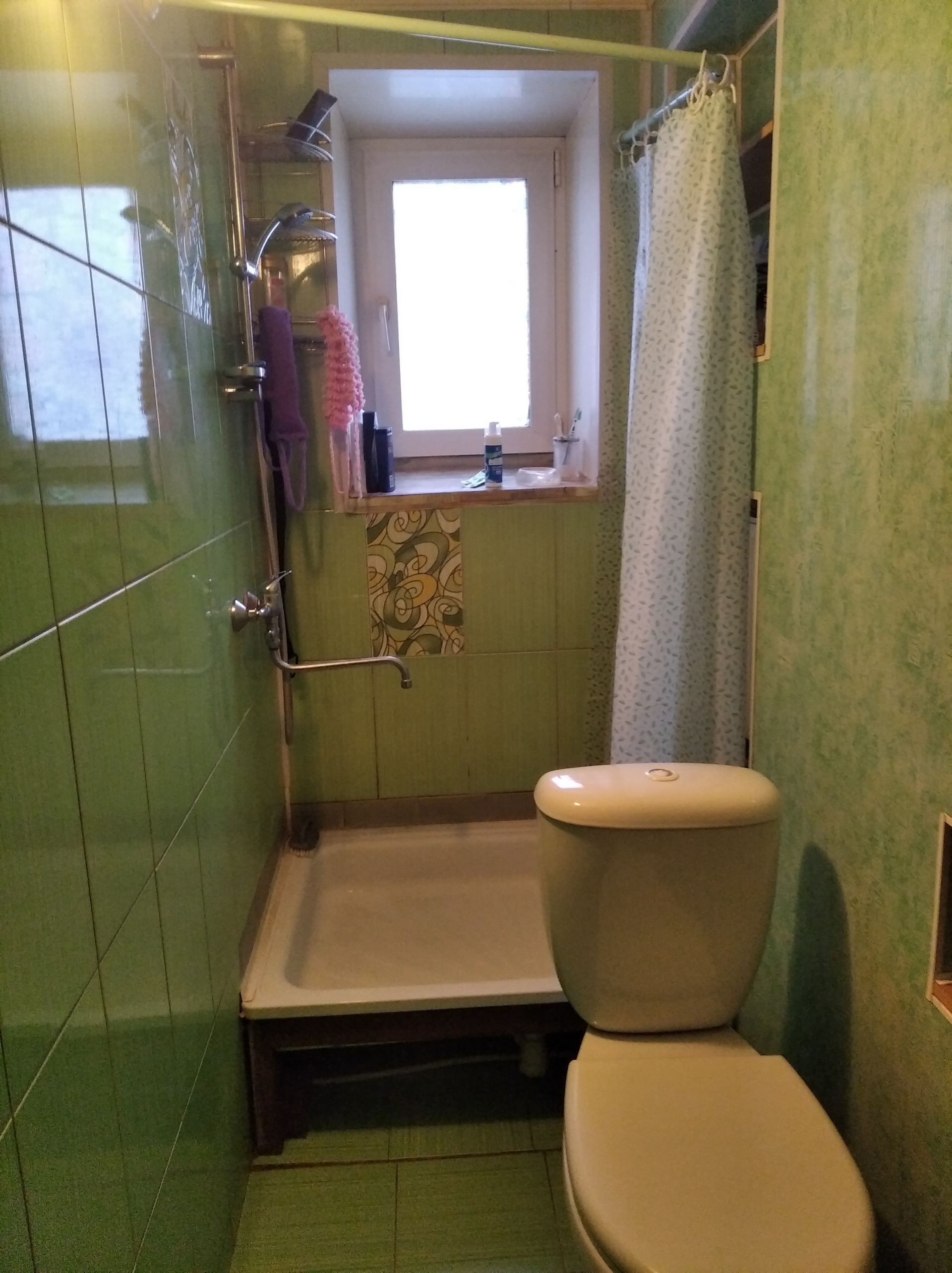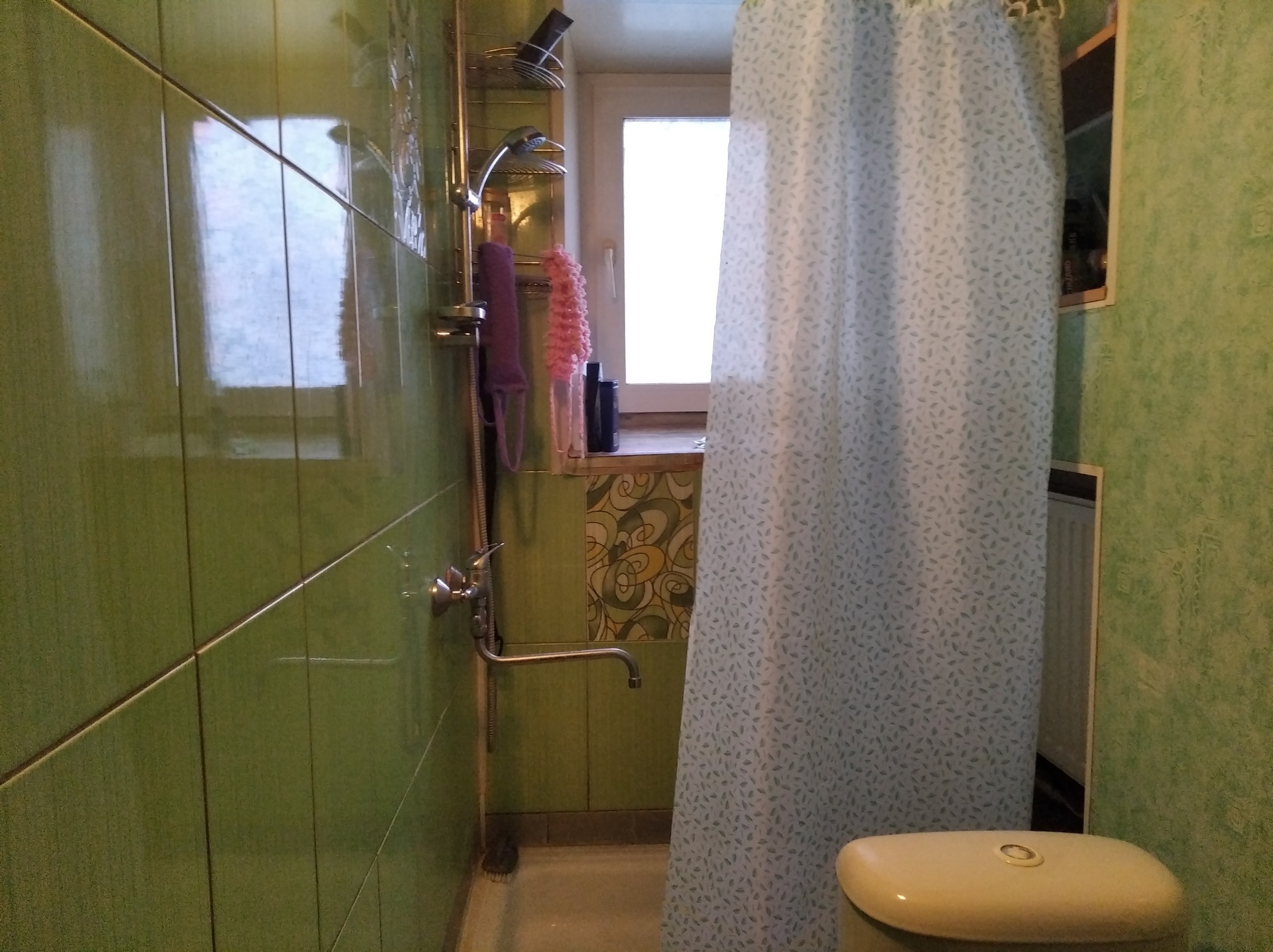 Совмещенный санузел. Кафельная плитка. Душ.
