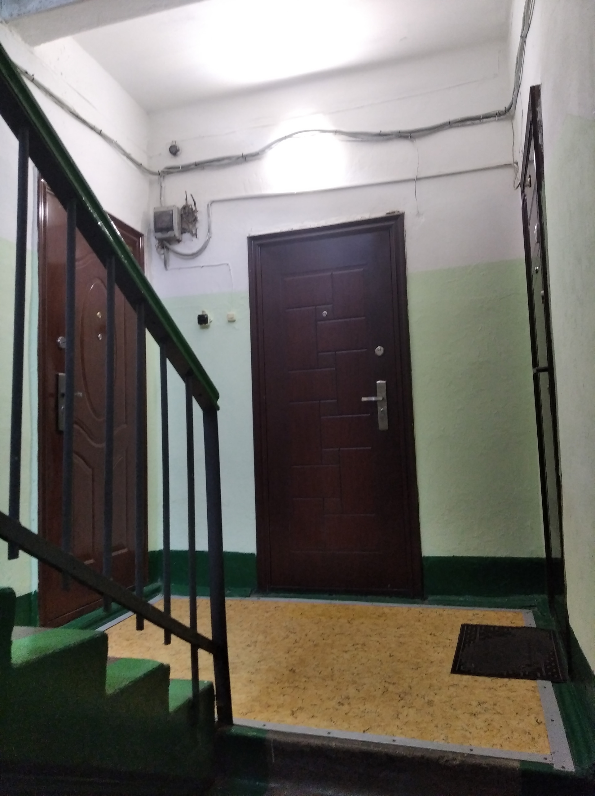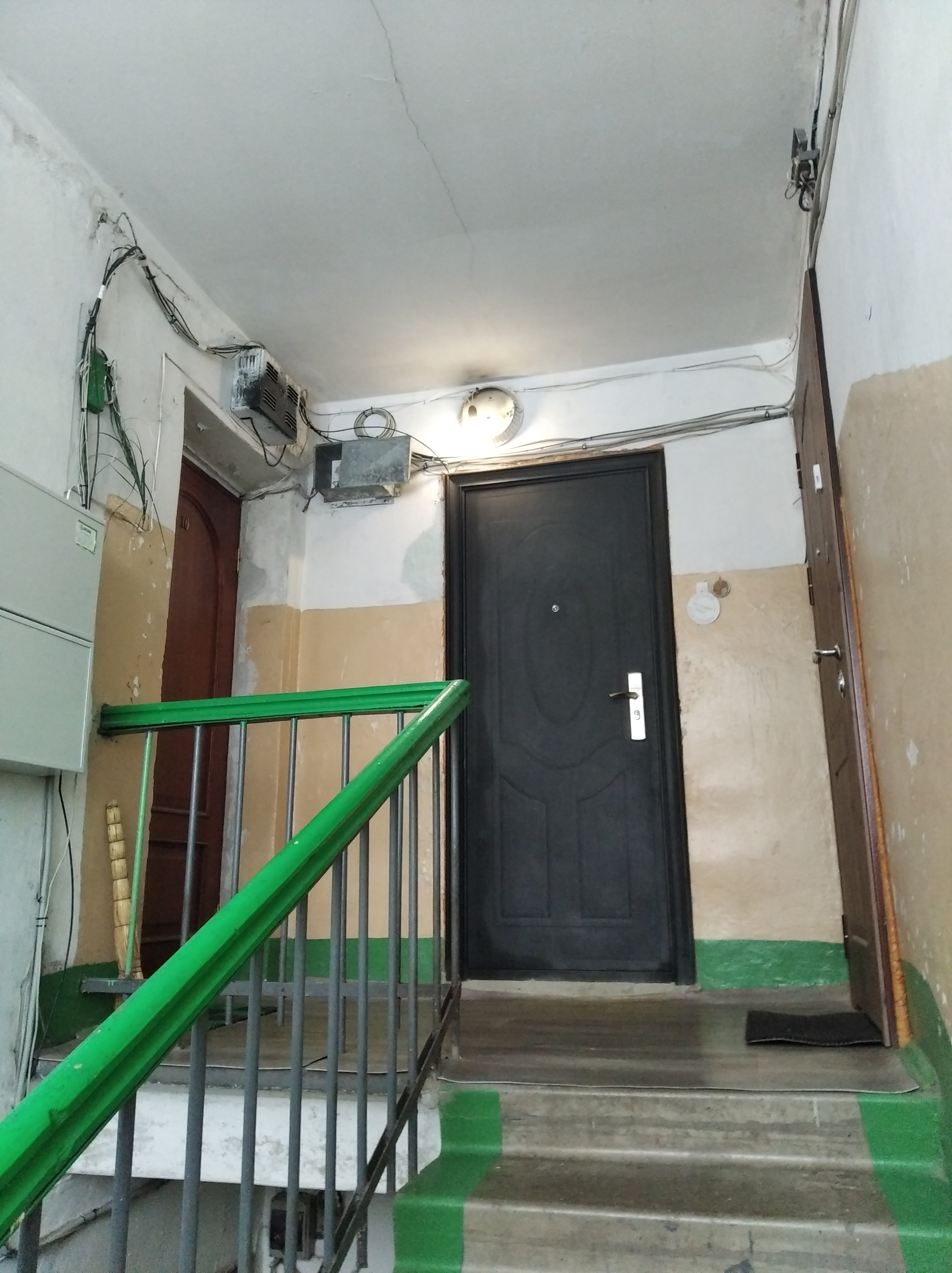 Чистая парадная. Парковка для автомашины во дворе.
