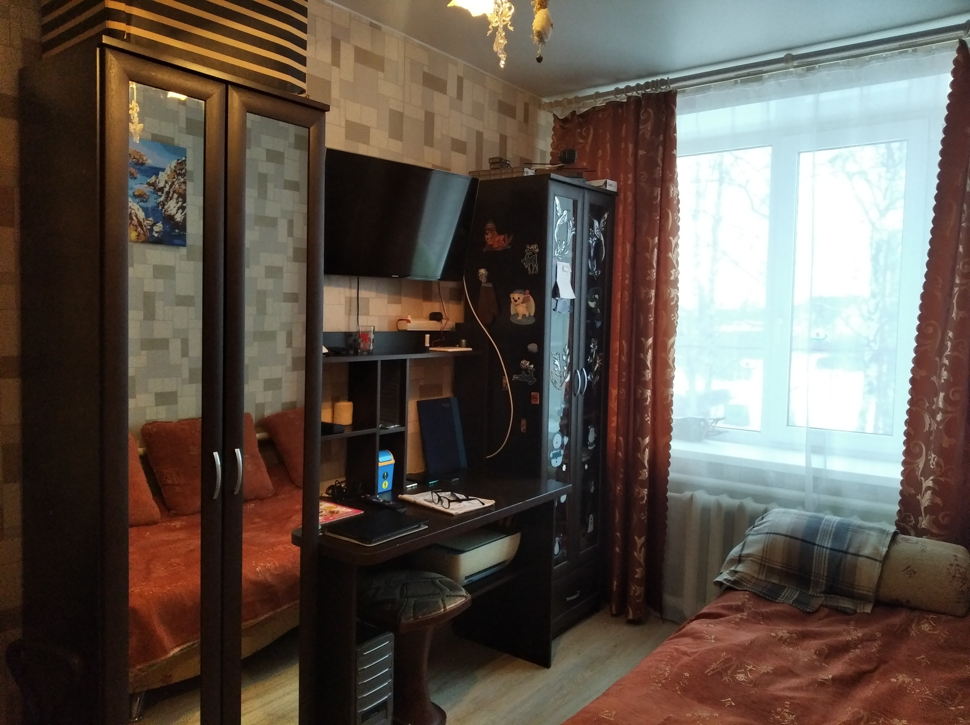 Комнаты изолированные 15,0 кв. м. и 12,0 кв. м. На две стороны. Пластиковые окна, натяжной потолок, пол ламинат. Вид из окон на улицу и во двор. Центральное водоснабжение, центральная канализация. Отопление автономное, газовое. Можно включать независимо от отопительного сезона.