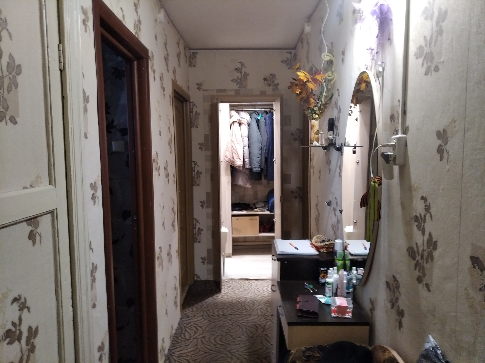 Квартира общая площадь 43,6 кв. м., жилая 27,5 кв. м., кухня 7,2 кв. м., прихожая, кладовая, гардеробная для хранения вещей.