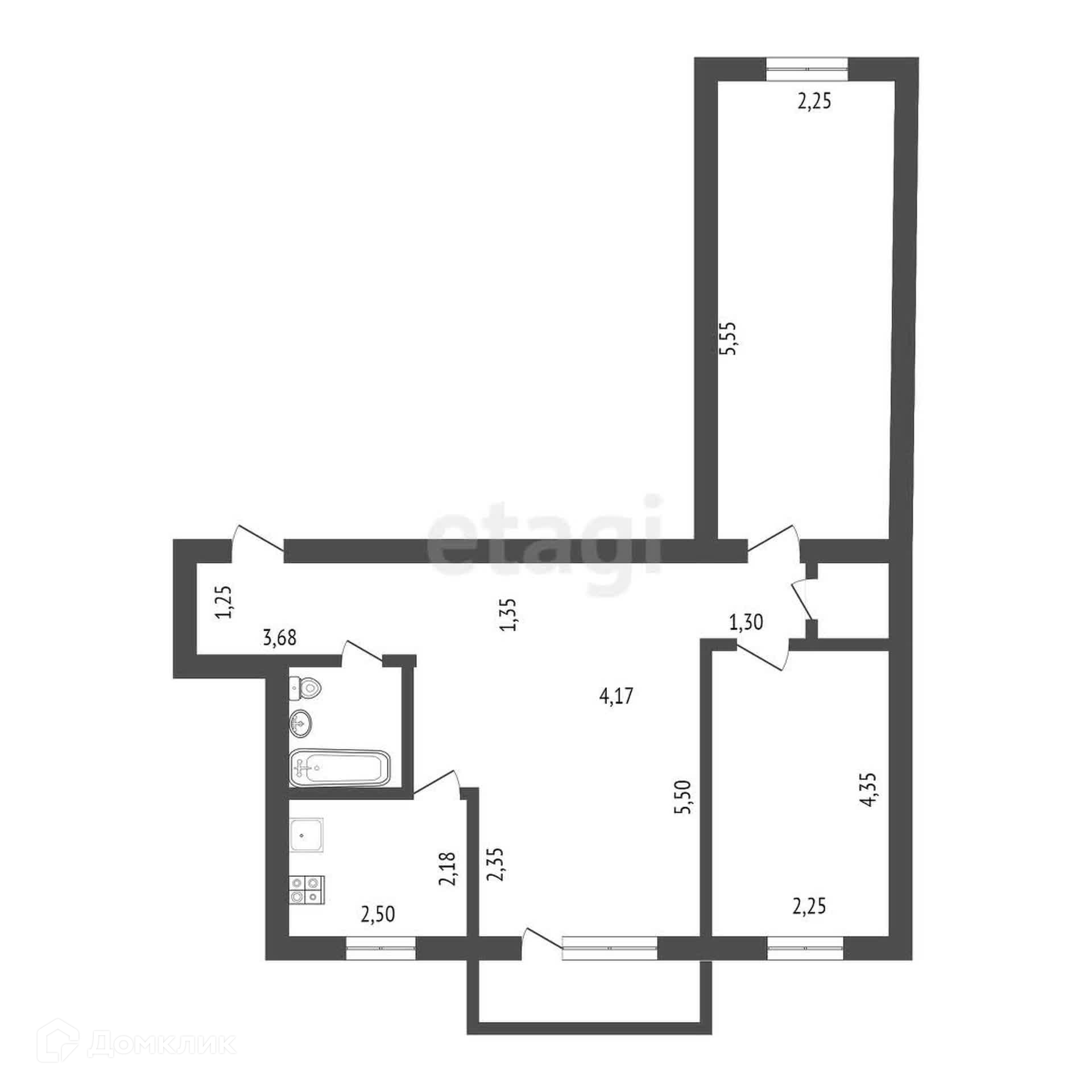 Общая площадь 55.7 м2