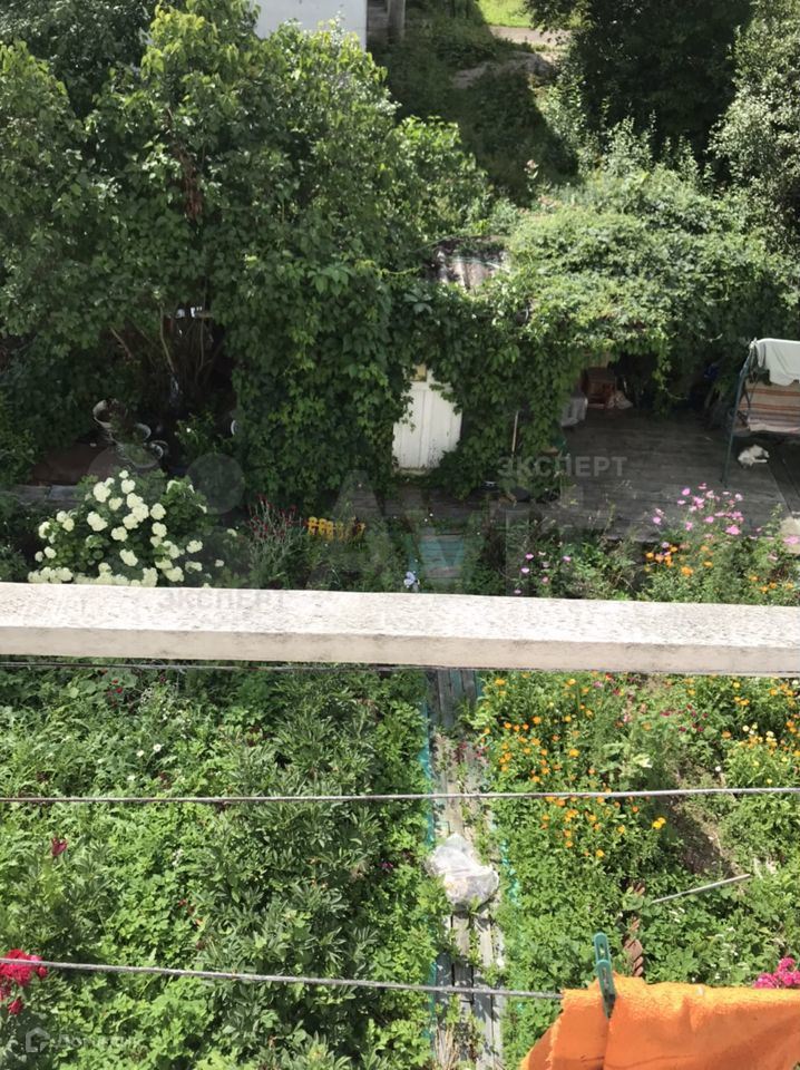 Рядом детский санаторий и пруд. Под балконом сделан палисадник, огороженный забором, на котором растёт яблоня, смородина.
