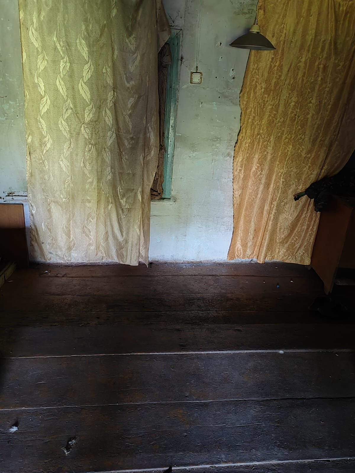 Одна комната и кухня, посередине печь. Большой участок бессрочном пользование, границы определены. Дом тёплый. Участок плодородный. Торг уместен!