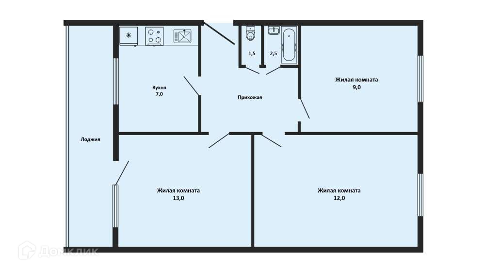 Количество комнат 3